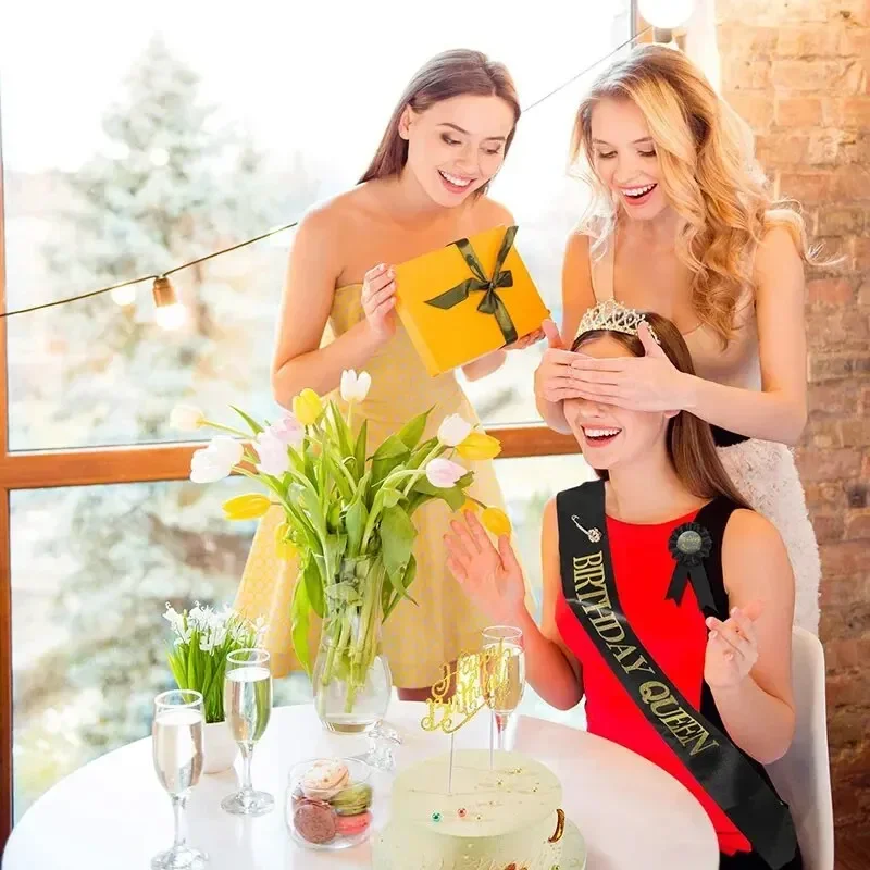 Bling Rhinestone Crystal Crown Tiara Birthday Anniversary Decoration Happy 18 21 30 40 50th Birthday Satin Sash Party Supplies