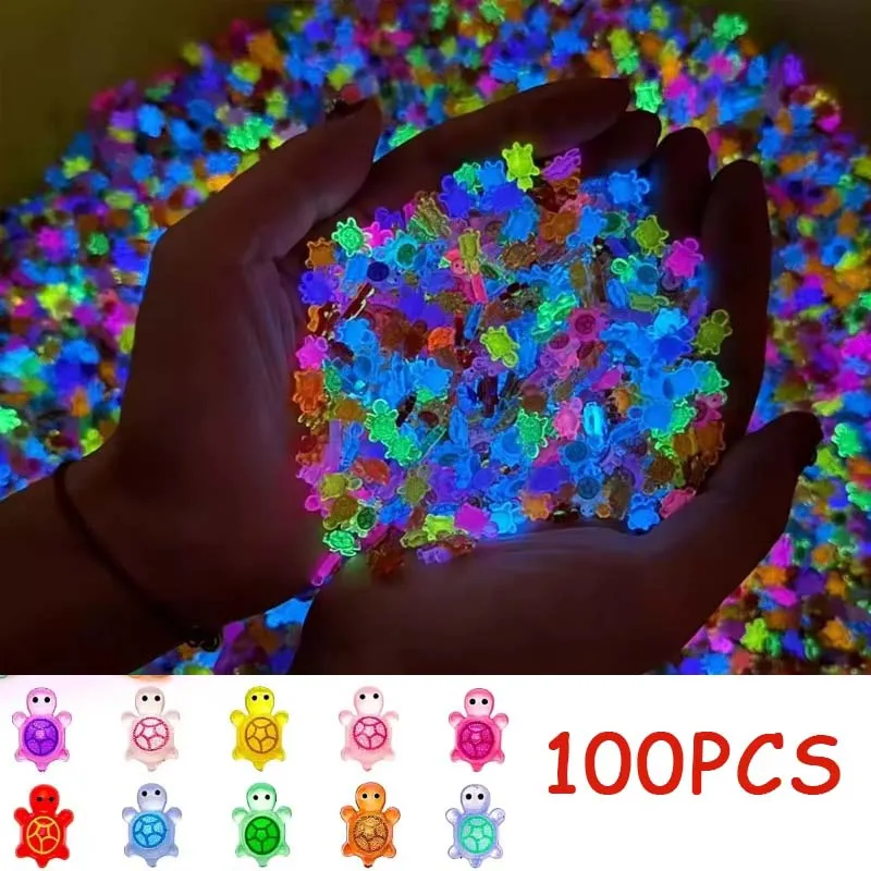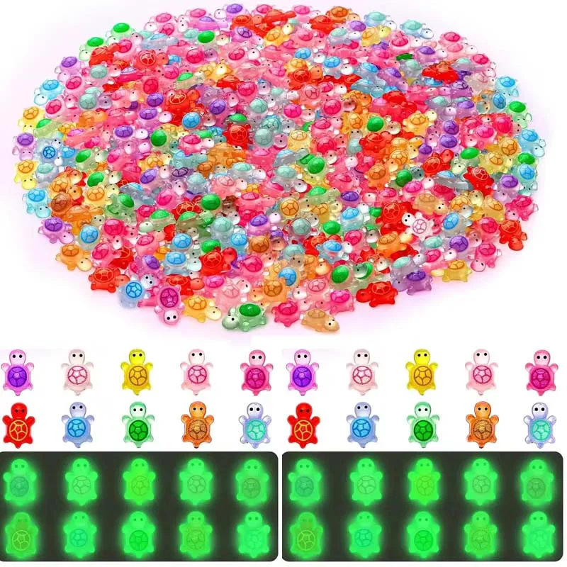 100pcs Miniature Sea Turtle Figurines,Luminous Mini Resin Tortoise Figures Multi-Color Tiny Toys Glow In The Dark