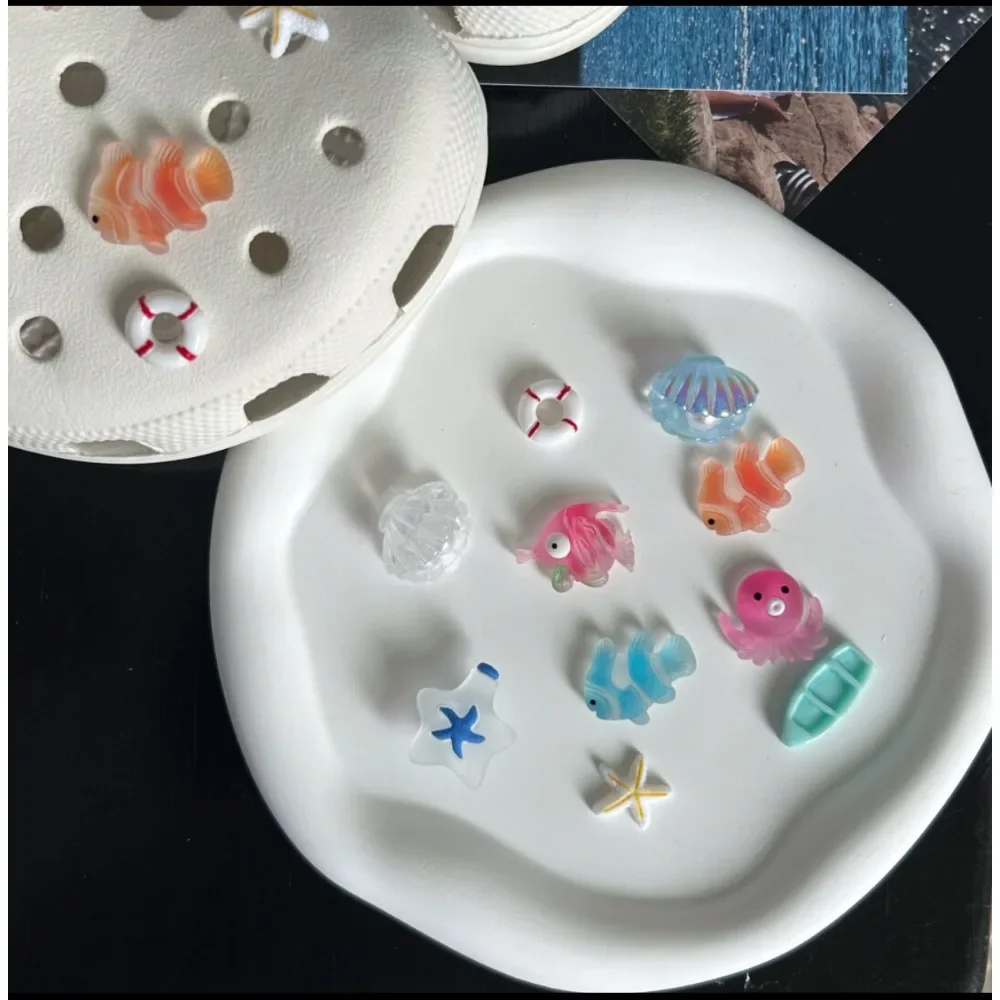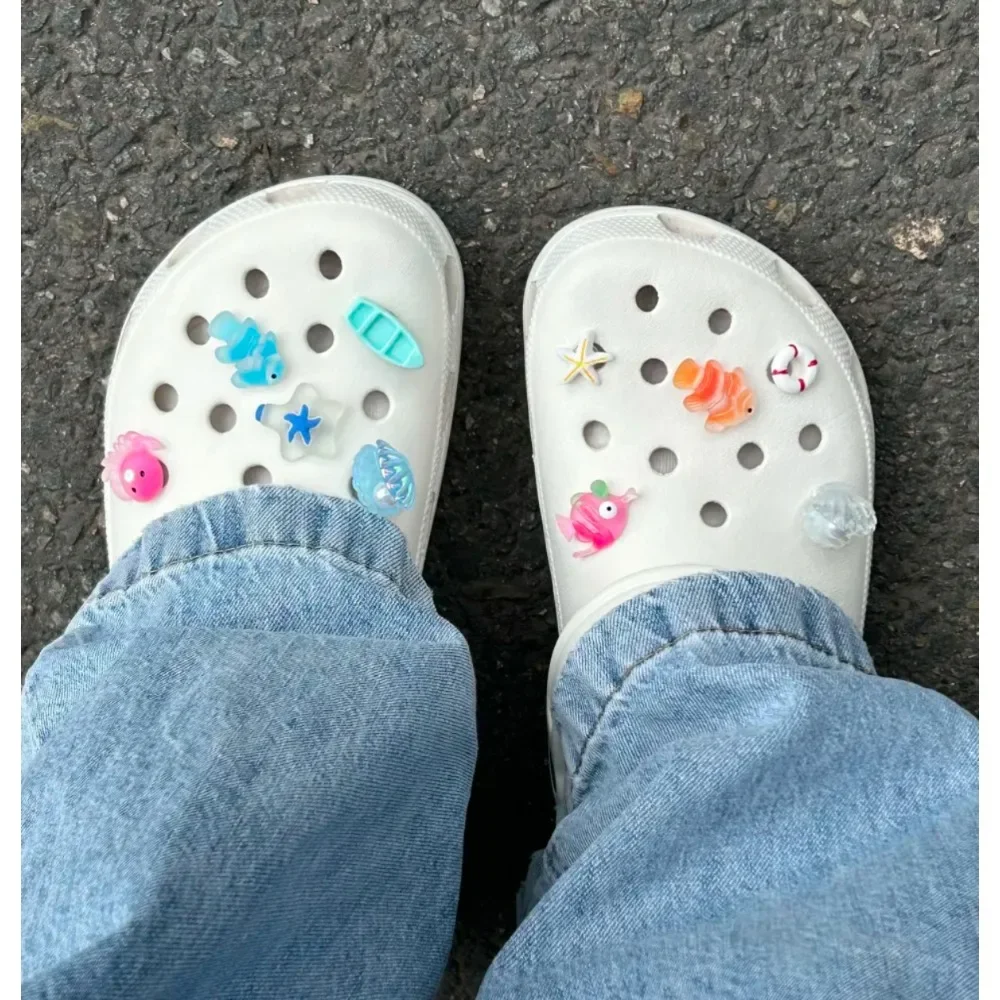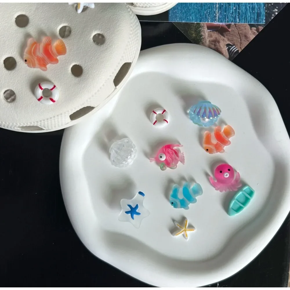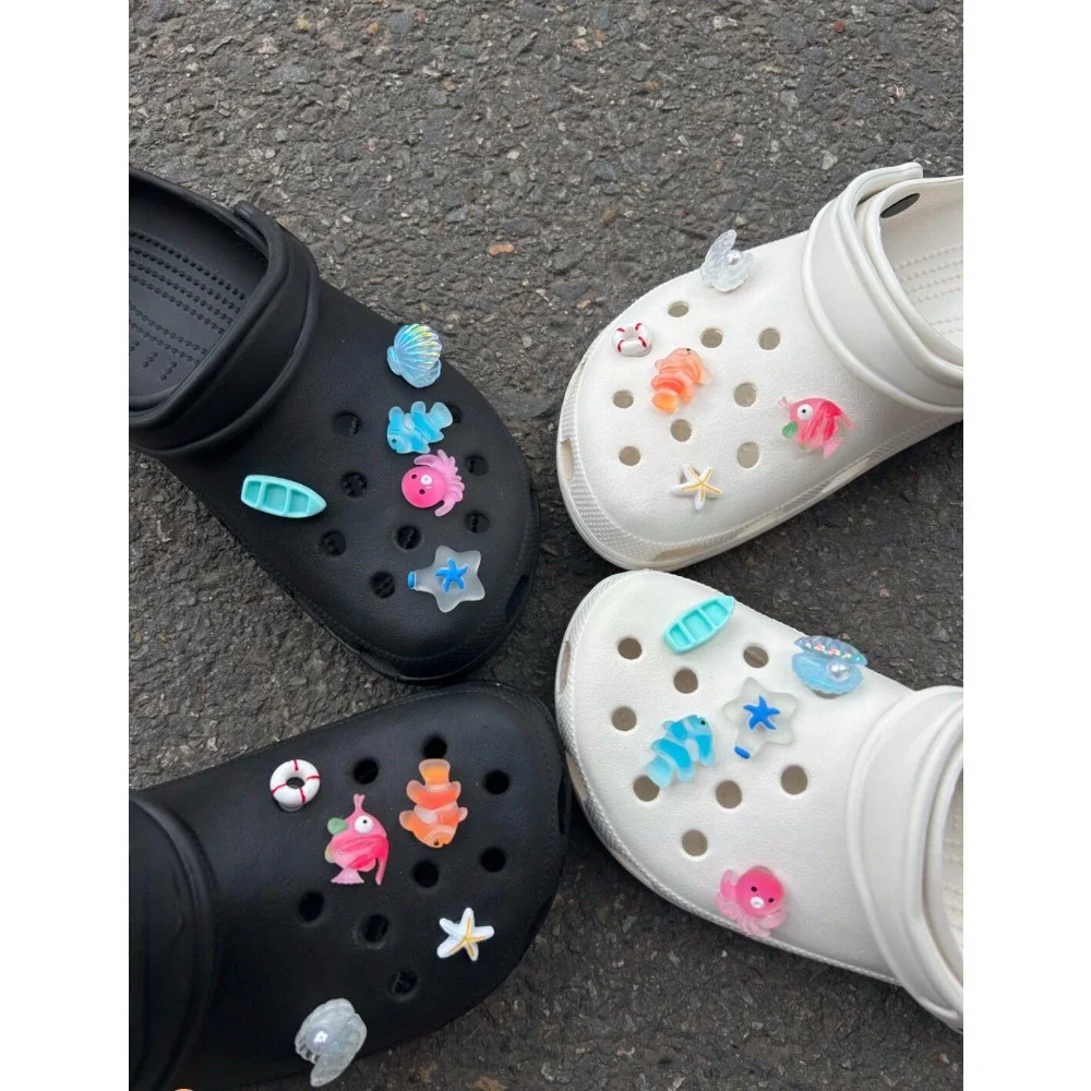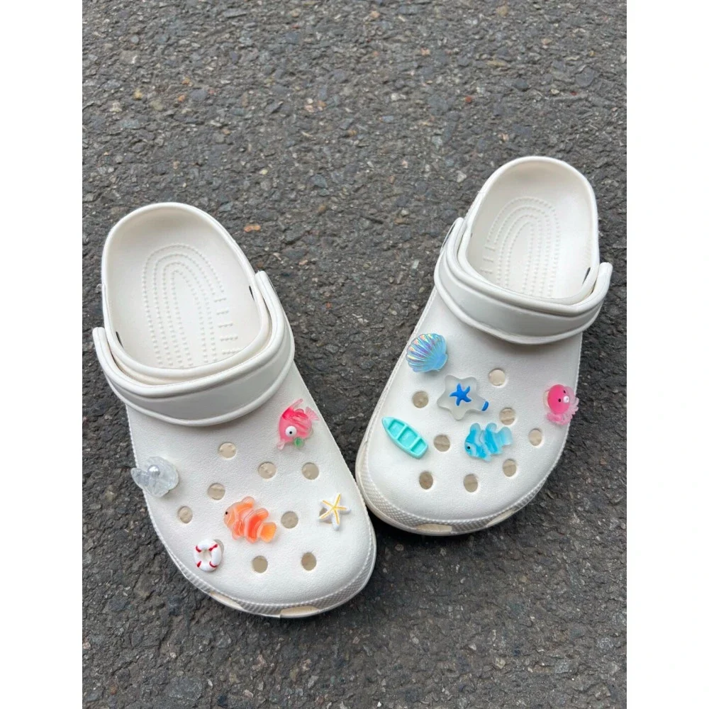 10pcs Shining Shell Marine Animal Shoe Charms Sandals Shoes Decoration Slipper Accessories for Girls Hole Shoes DIY Gift