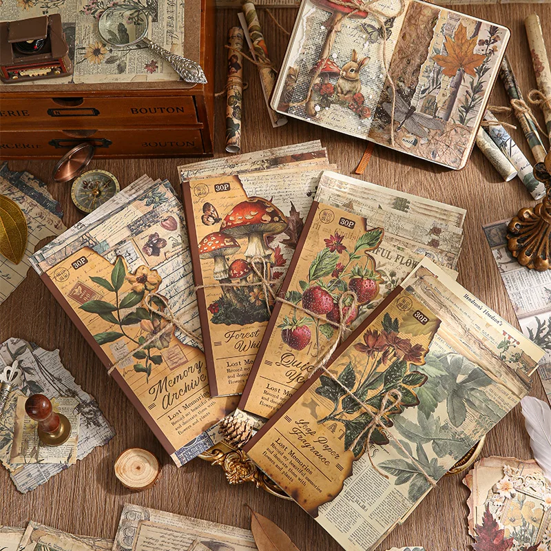 30pcs Lost Memory Series Retro Journal Scrapbook Background Decorative Paper Creative Collage DIY Handmade Aesthetic Craft Paper