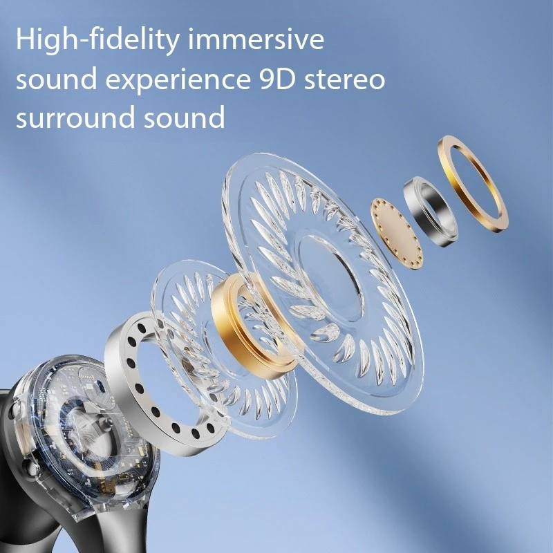 New Mirror Surface Digital Display Soft Silicone Ear Clip Wireless Bluetooth Earphones with Noise Reduction, High-Definition Sound, Lossless for Sports