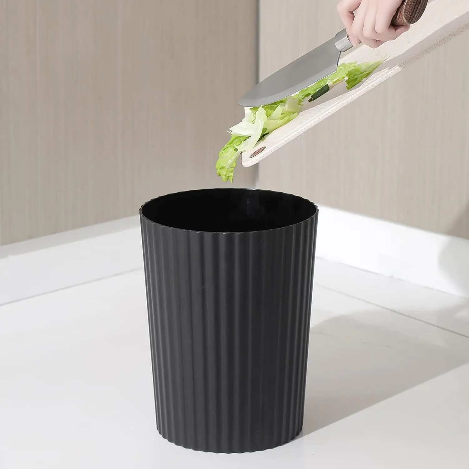 Trash Can Plastic Wastebasket Round Garbage Container Bin for Bathroom Kitchen Bedroom Home Office College Dorm