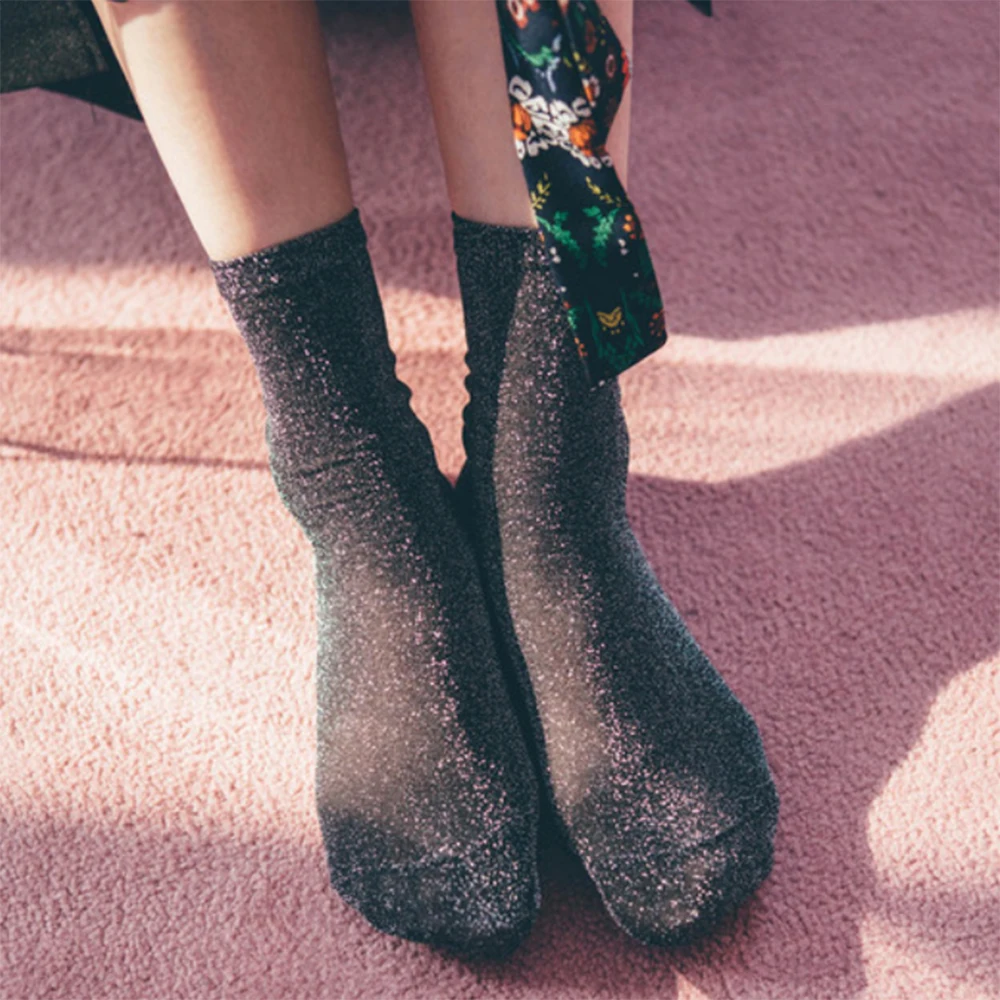 1 Pair/Set Women's Thin Sheer Summer Breathable Shiny Socks Korean Style Silk Socks Luxury Design High Quality Socks