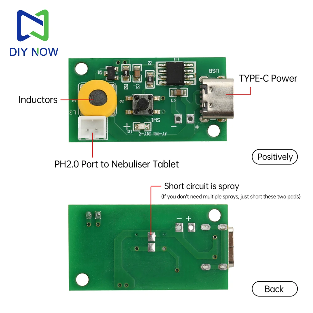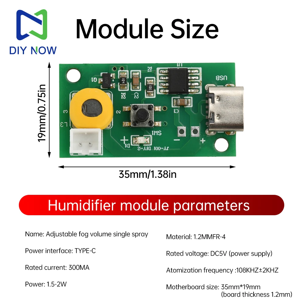 Type C 3 Levels Adjustable Fog Volume Single Spray Humidifier Module Mist Maker and Driver Circuit Board Fogger Atomization Film