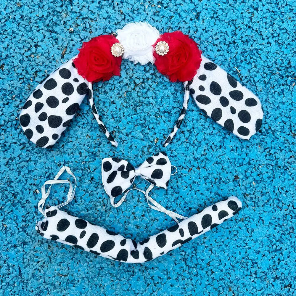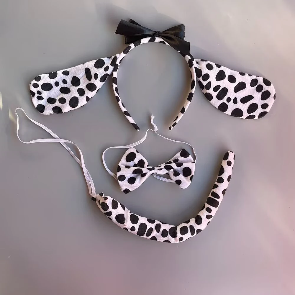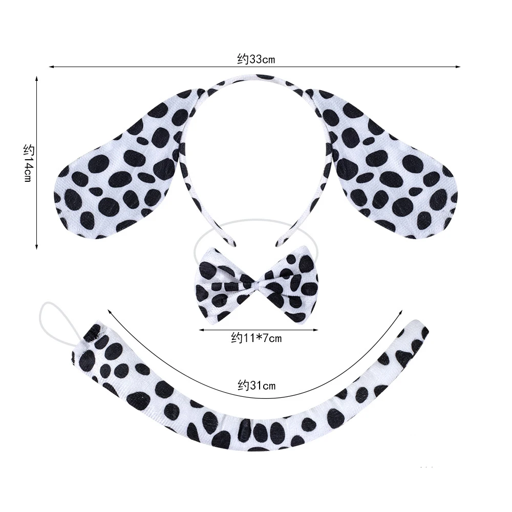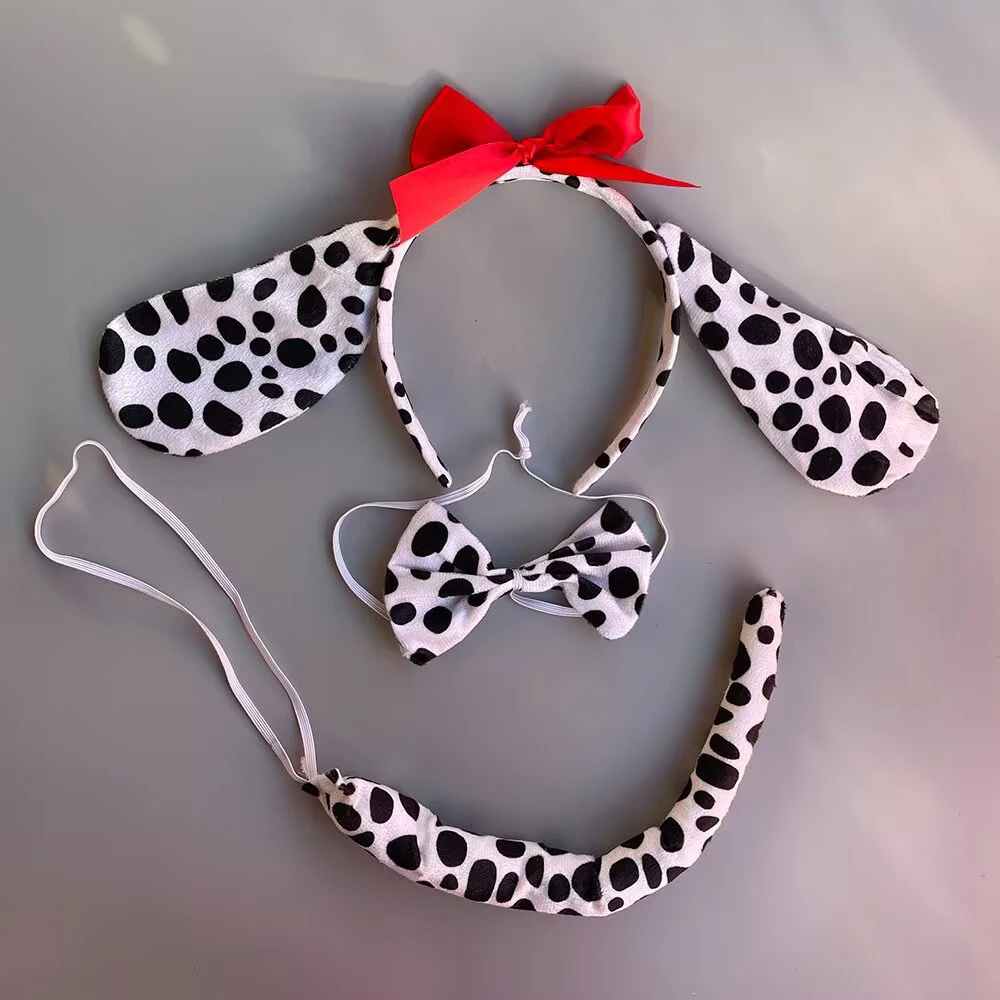Plush Cartoon Boy Dalmatian Animal Dog Headband Ear Bow Tail Gift Birthday Party Cosplay Costume Halloween Christmas