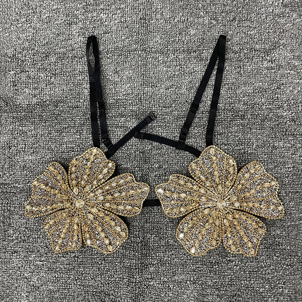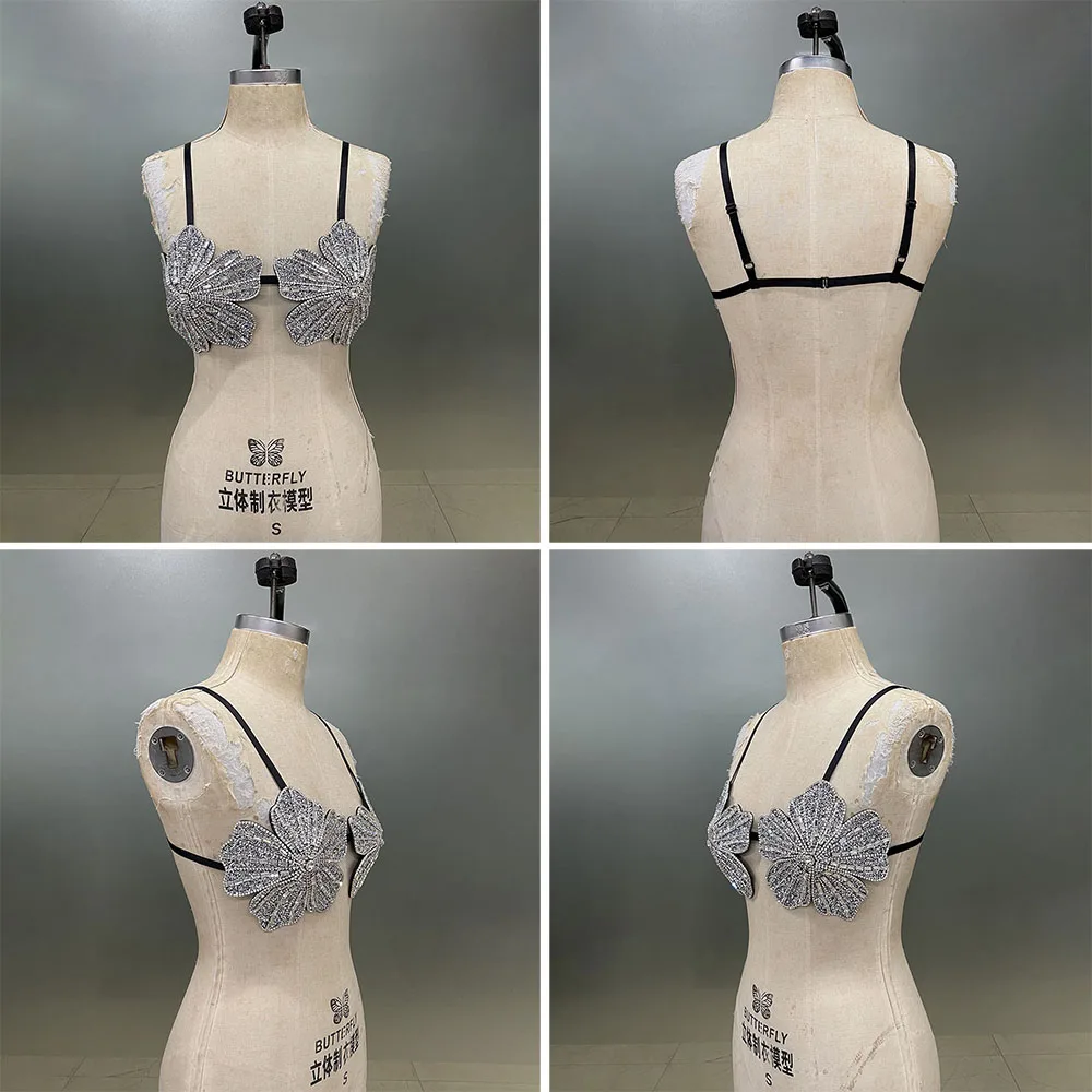YOUR BUMP CURVE Handmade crystal bra flower embroidery inlaid metal rhinestones short top women beach pool yacht sea party
