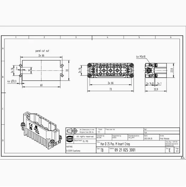 1pcs 09210253001 Germany HARDING Heavy Duty Connector HAN-25D-STI-C Cold Pressed Type