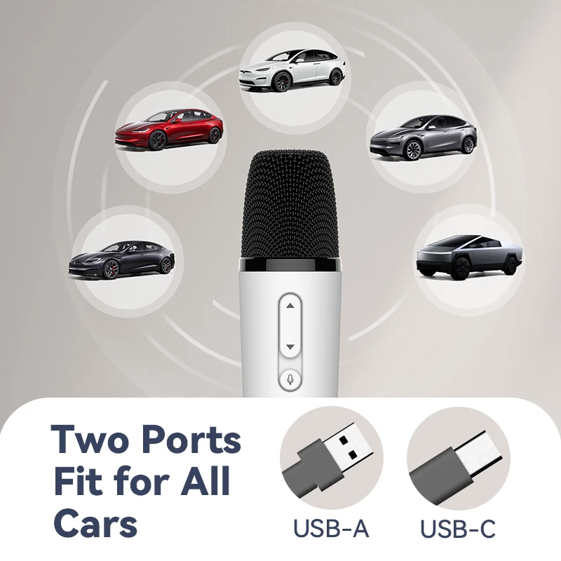 T1-Car Karaoke Microphone, Rechargeable Caraoke Mic with USB-A & USB-C Receiver, Plug to Use,No Need Pair