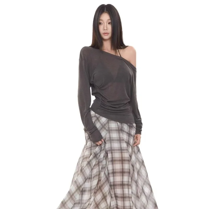 aliexpress , ali , shop , ali shop , online , prodavnica , online shop , online prodavnica , kupujem , prodajem , French Style T-Shirts for Women Off Shoulder Chic Casual Top Spring Summer 2025 New Fashion Female Long Sleeve T-Shirts