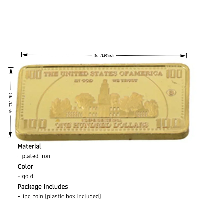 USA 100 Dollar Gold Tone Commemorative Souvenir Bar Metal Coin 1Pcs With Gift Box For Collection