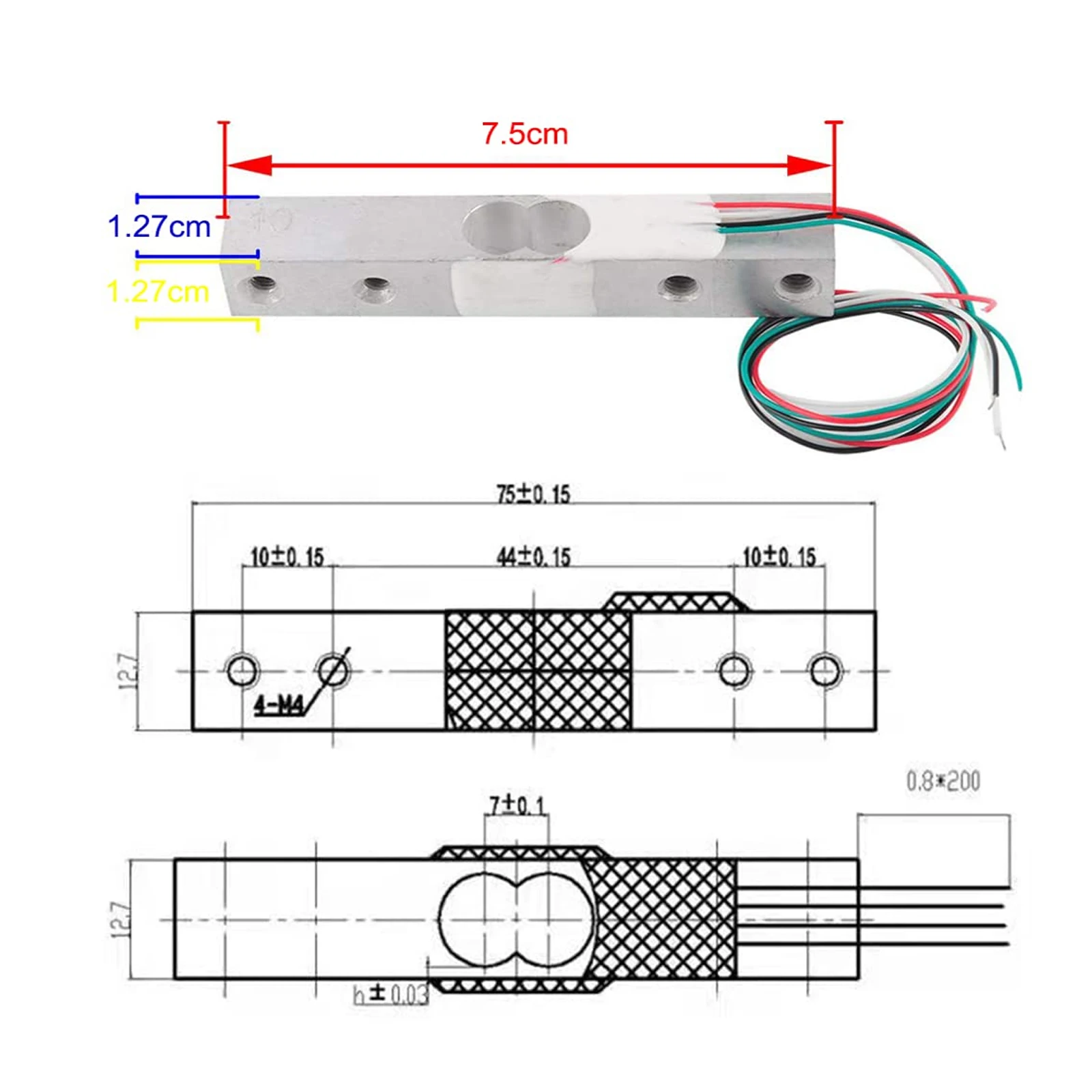 Digital Load Cell Weight Sensor + HX711 ADC Module Weighing Sensor for DIY Portable Electronic Kitchen Scale 1KG 2KG 5KG 10KG 20