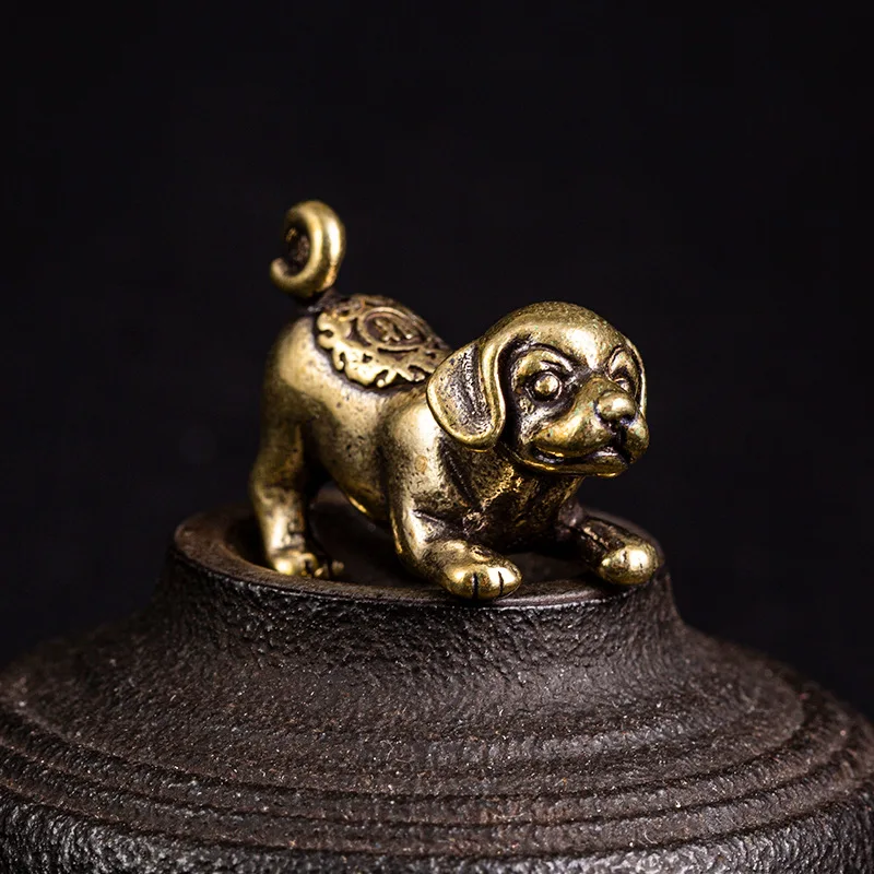 Retro Copper Dachshund Statue Vintage Brass Figurines Home Decote Desktop Ornament Cute Miniatures Antique Tea Pet Crafts Gifts