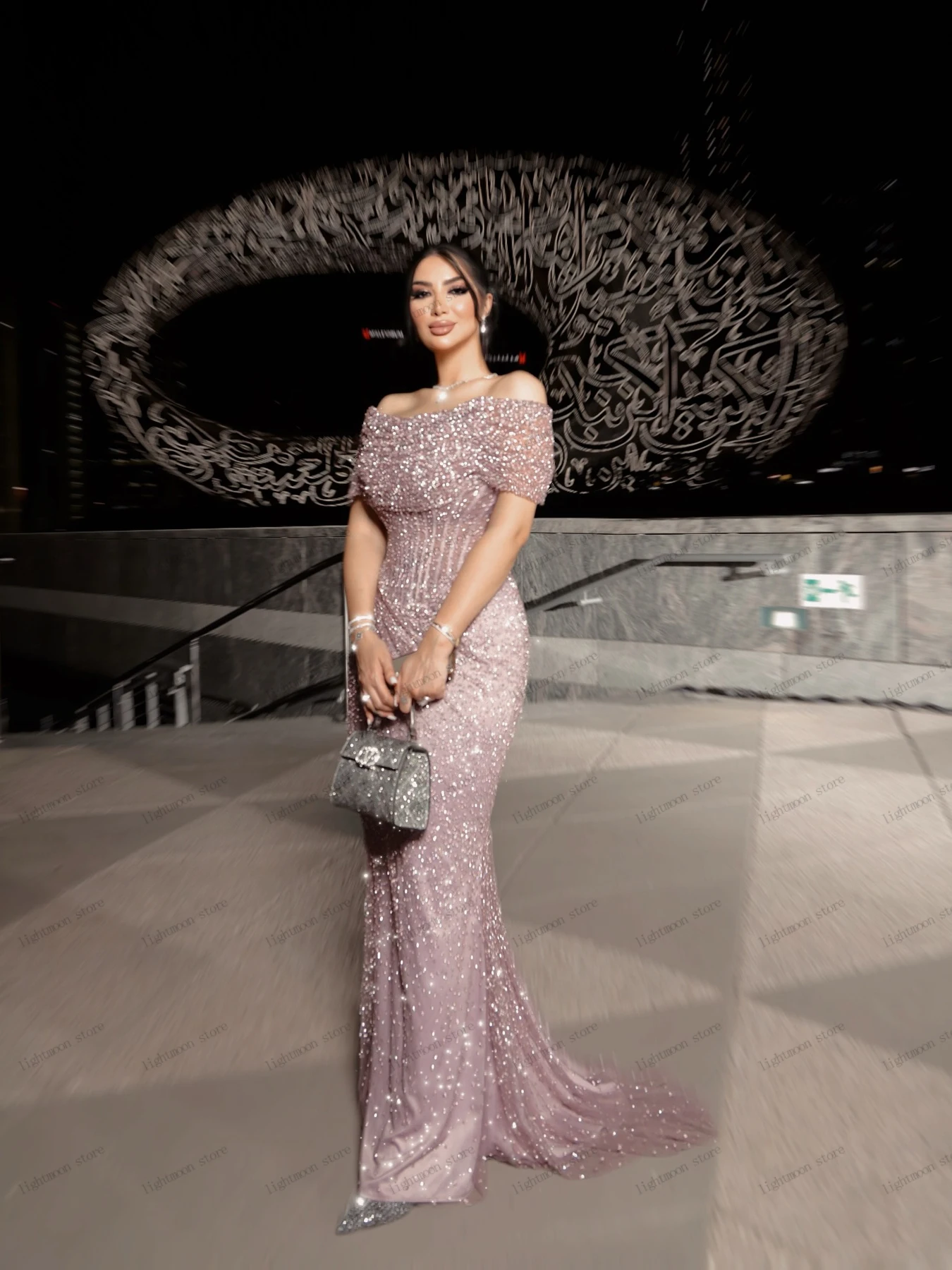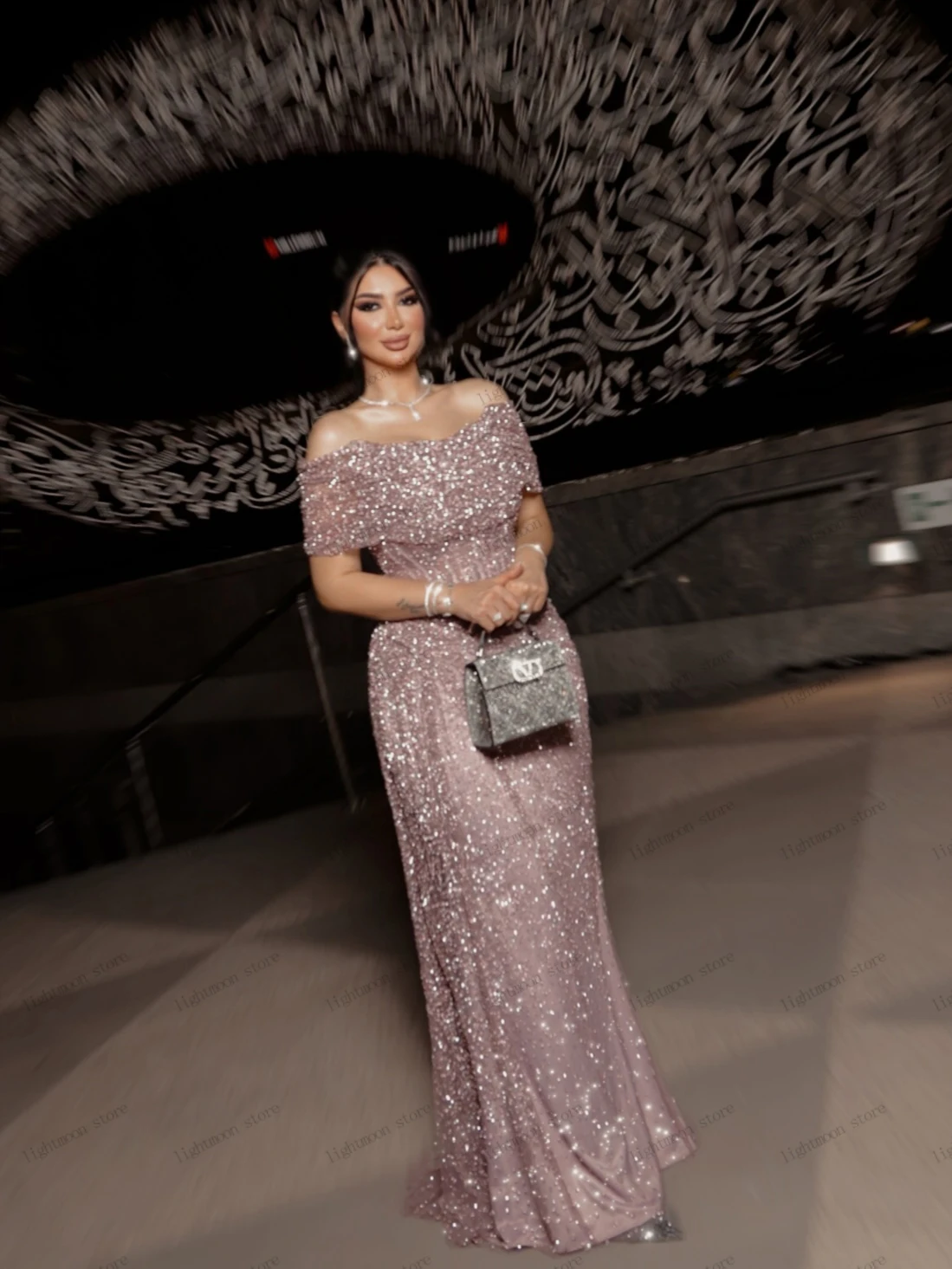 Glitter Evening Dresses Glamorous Prom Dress Off The Shoulder فساتين سهرة Sequin Appliques Elegant Vestidos De Gala Customized