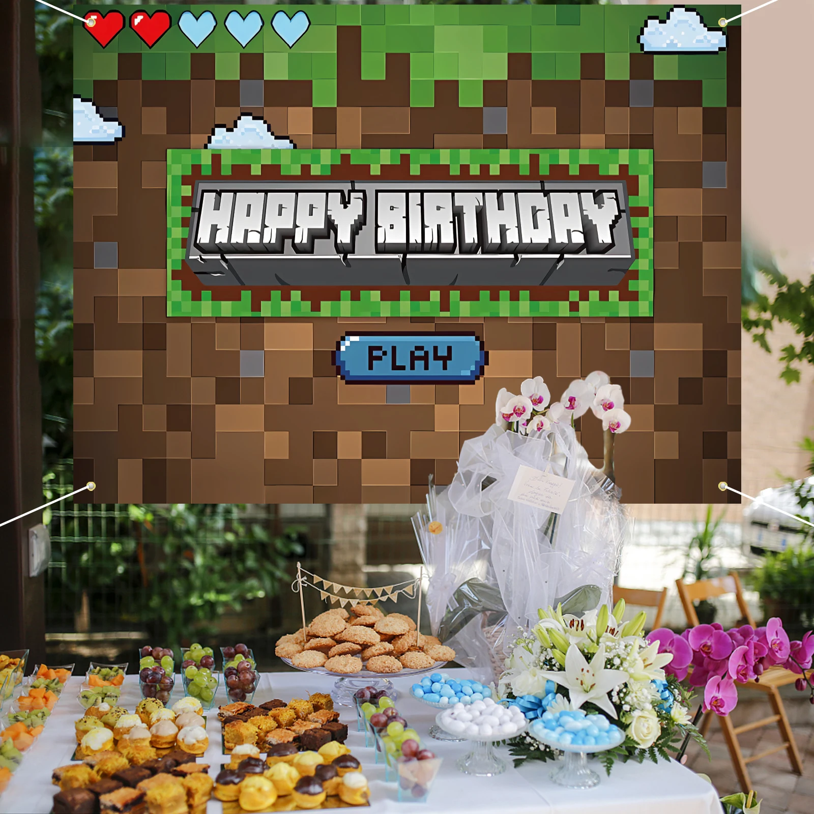 Pixel Backdrop for Happy Birthday Video Game Themed Party Photography Background Mining Party Supplies Pixel Party Decorations