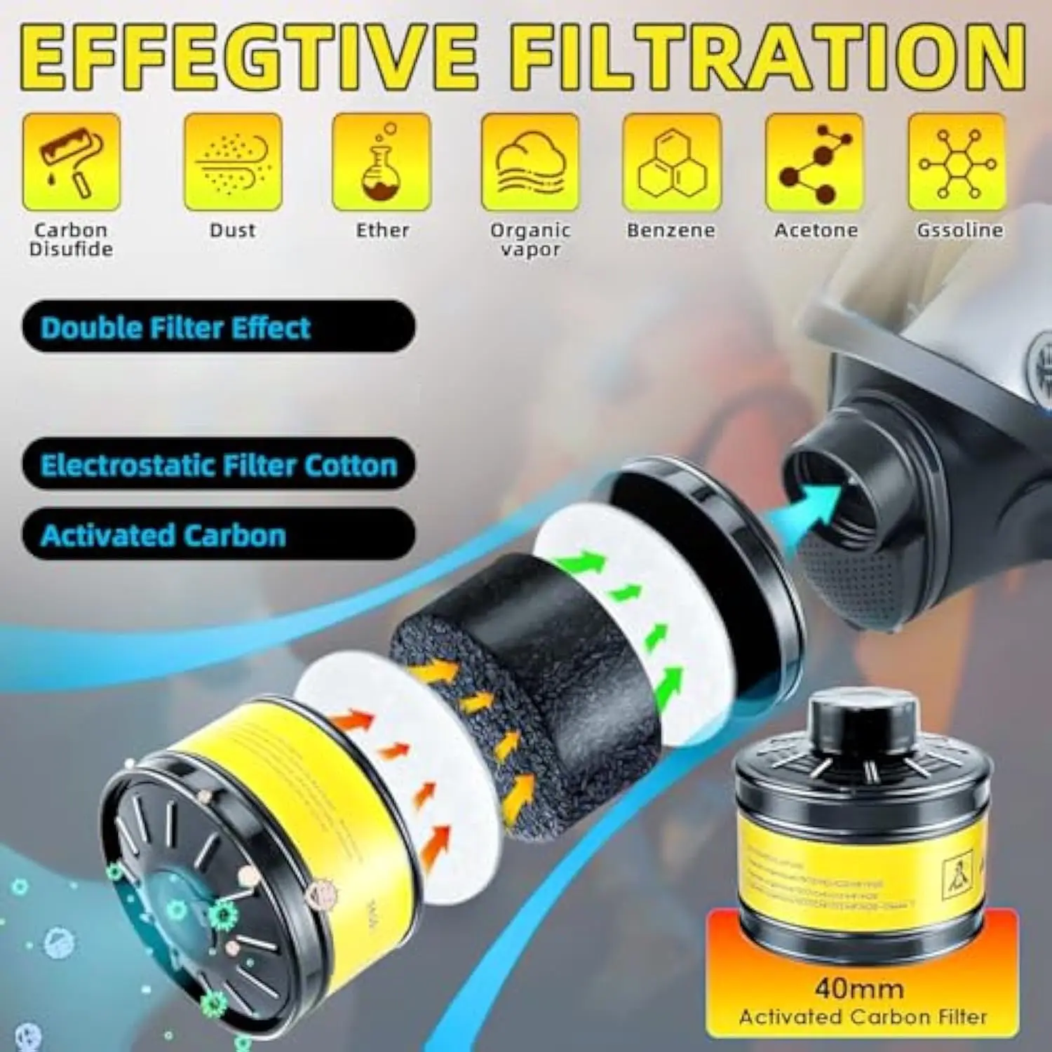 Gas Mask Filter 40mm Respirator Canister Practical Replacement Accessory mask Chemical gas mask Respirator