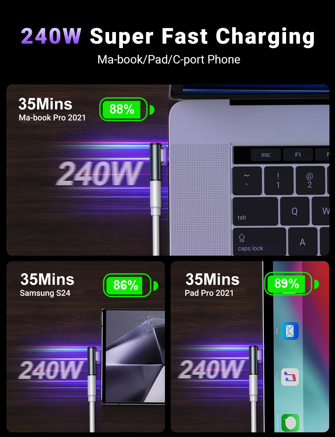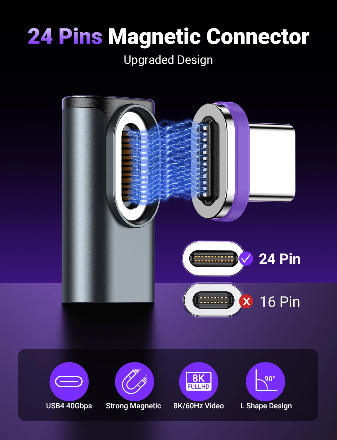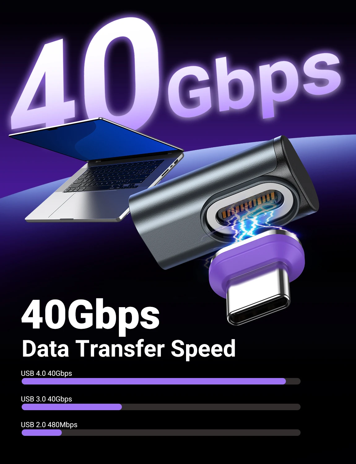 AUFU USB4.0 Magnetic Adapter 24Pin 240W USB C To Type C 40Gbp Fast charge USB C Female Converter 8K USB OTG Adapter Thunderbolt3