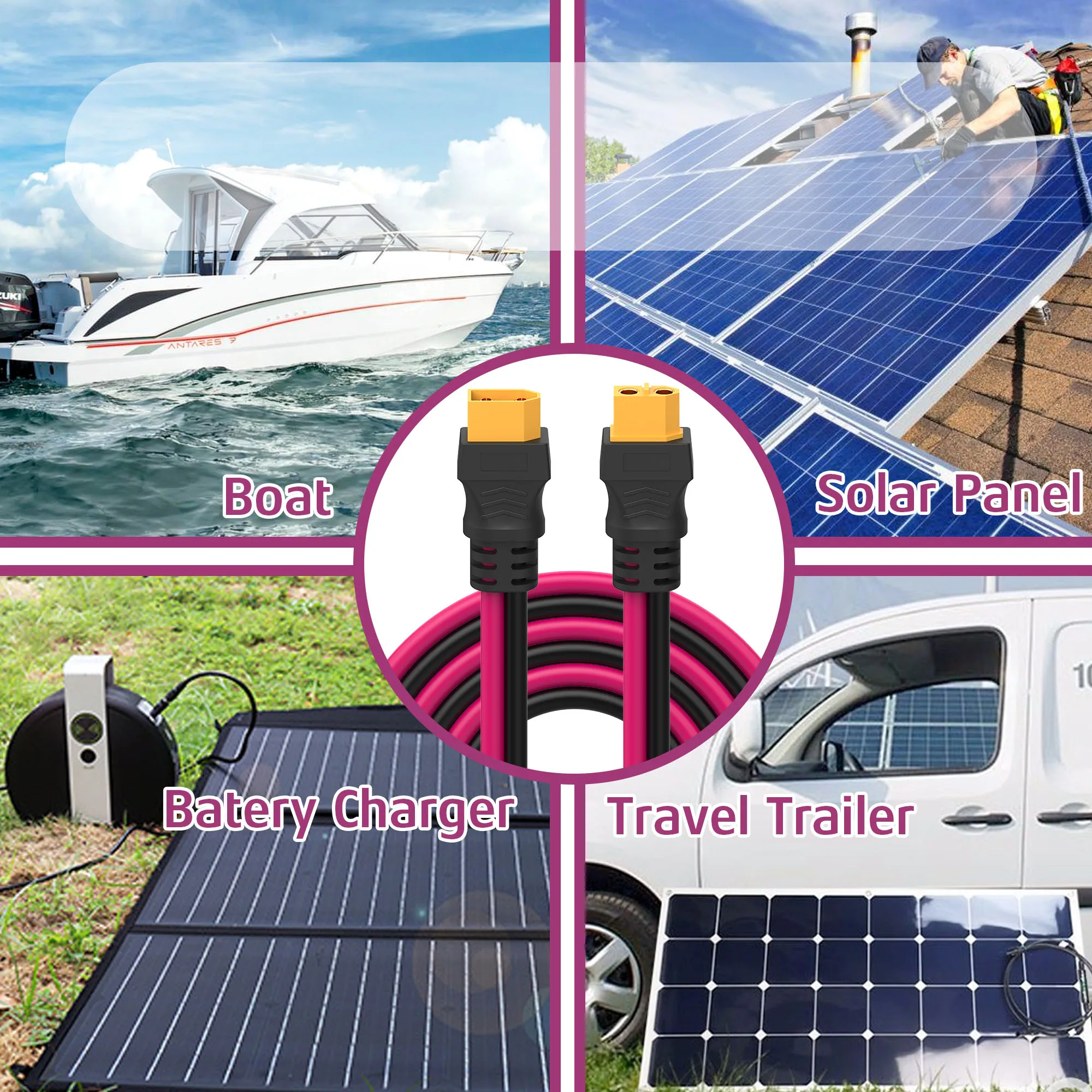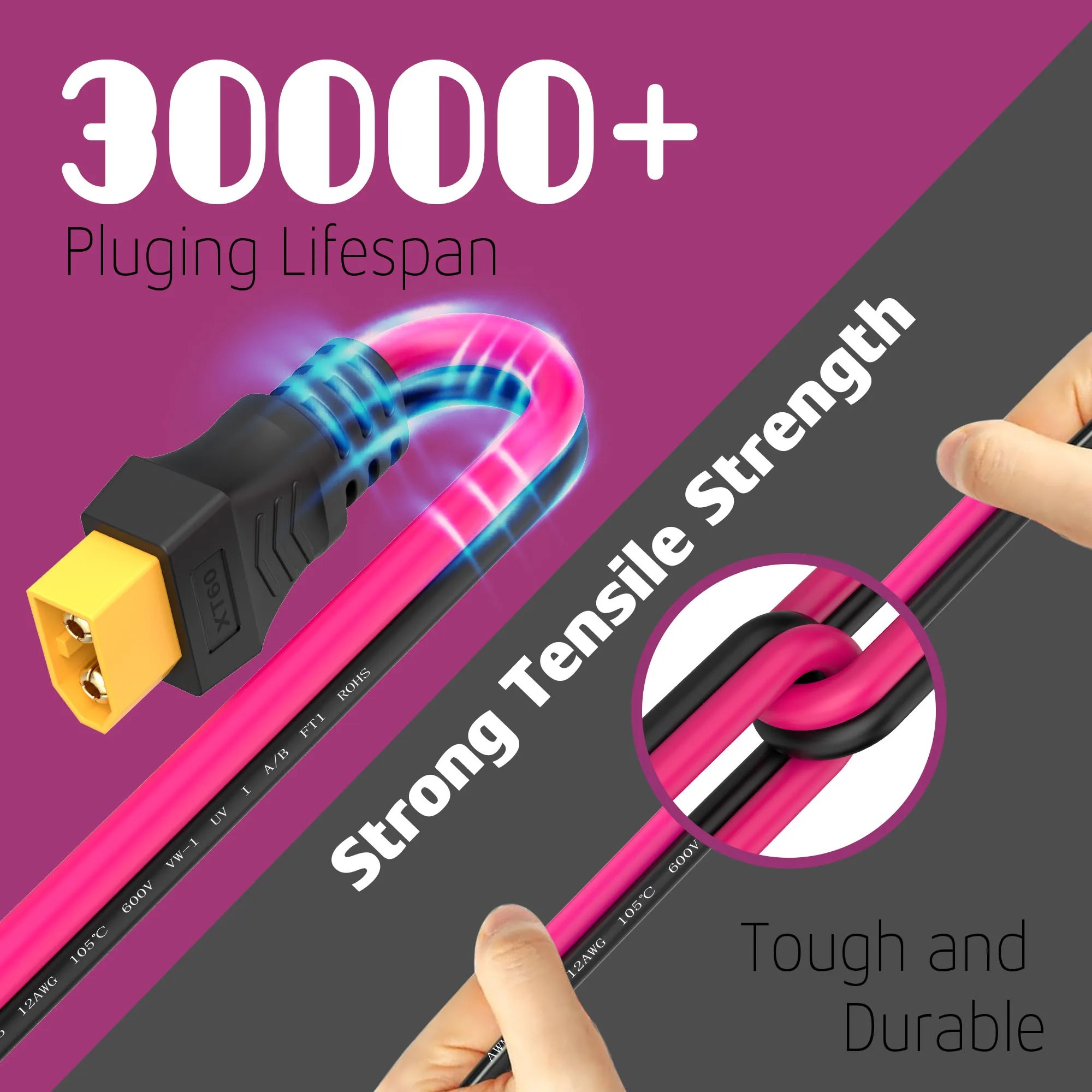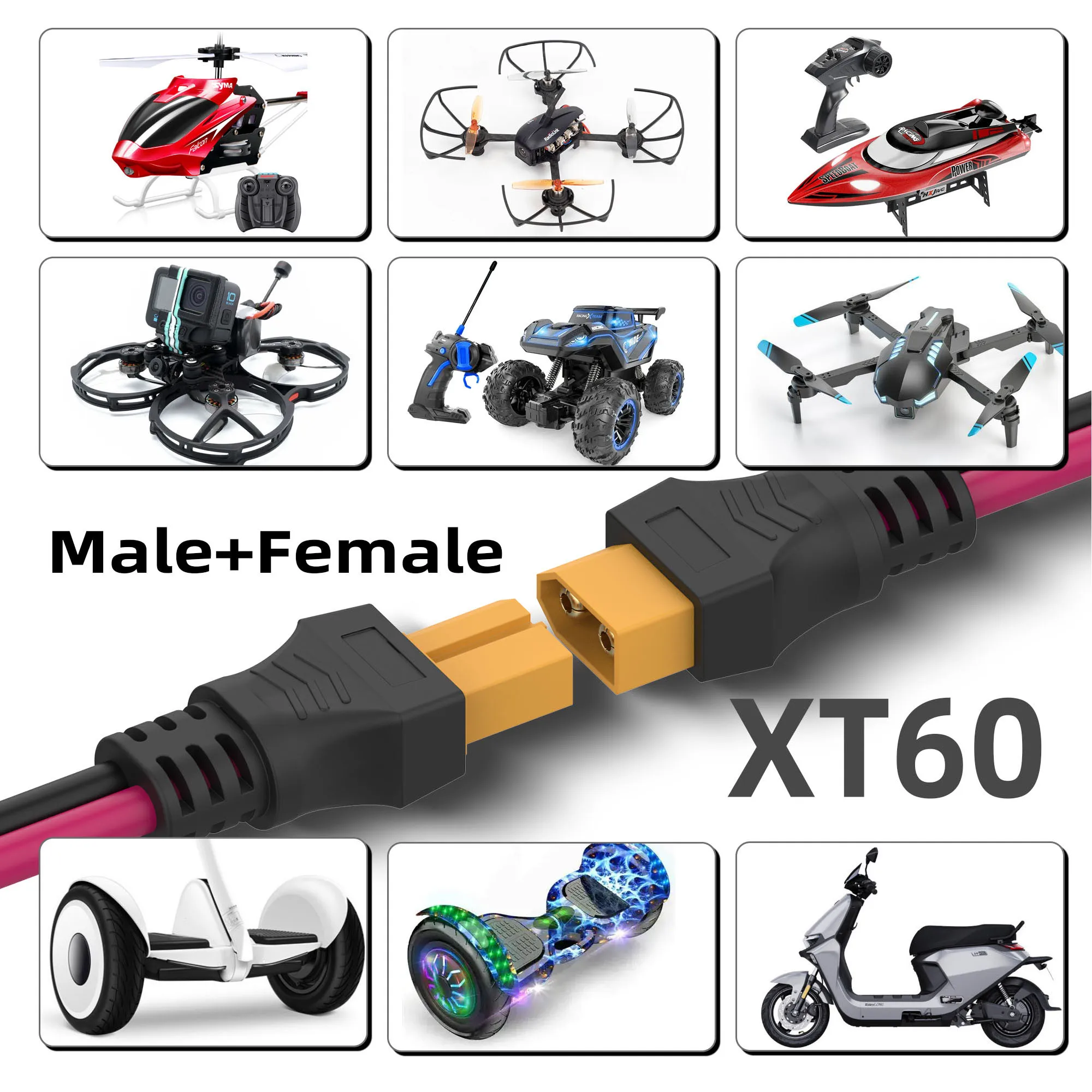 XT60 extension cable 12AWG XT60 to XT60 cable, with male to female connectors, suitable for solar panel remote control battery