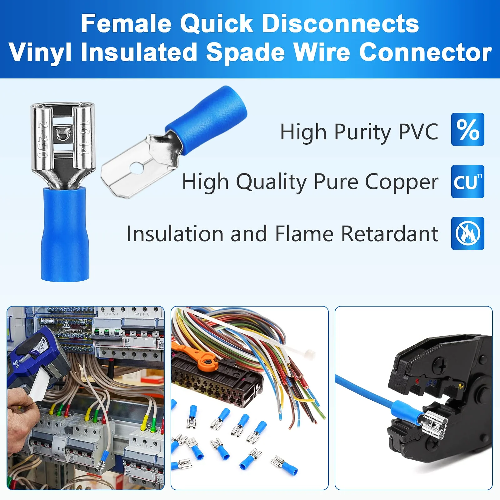 60/80pcs male female insulated spade connector, 6.3mm 1/4'' 22-16/16-14/12-10 awg- electrical quick disconnect wire connectors -