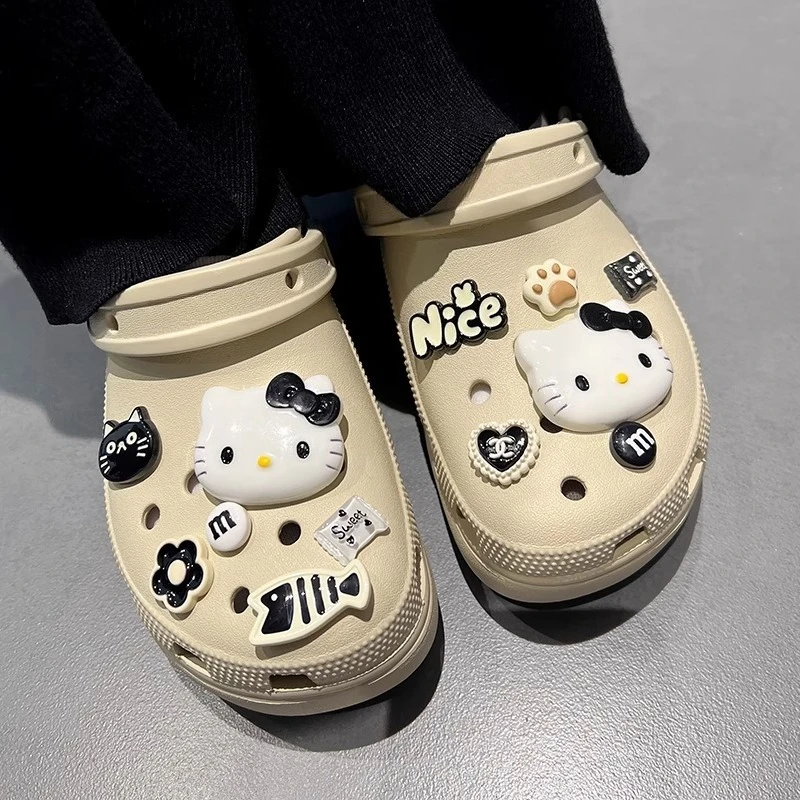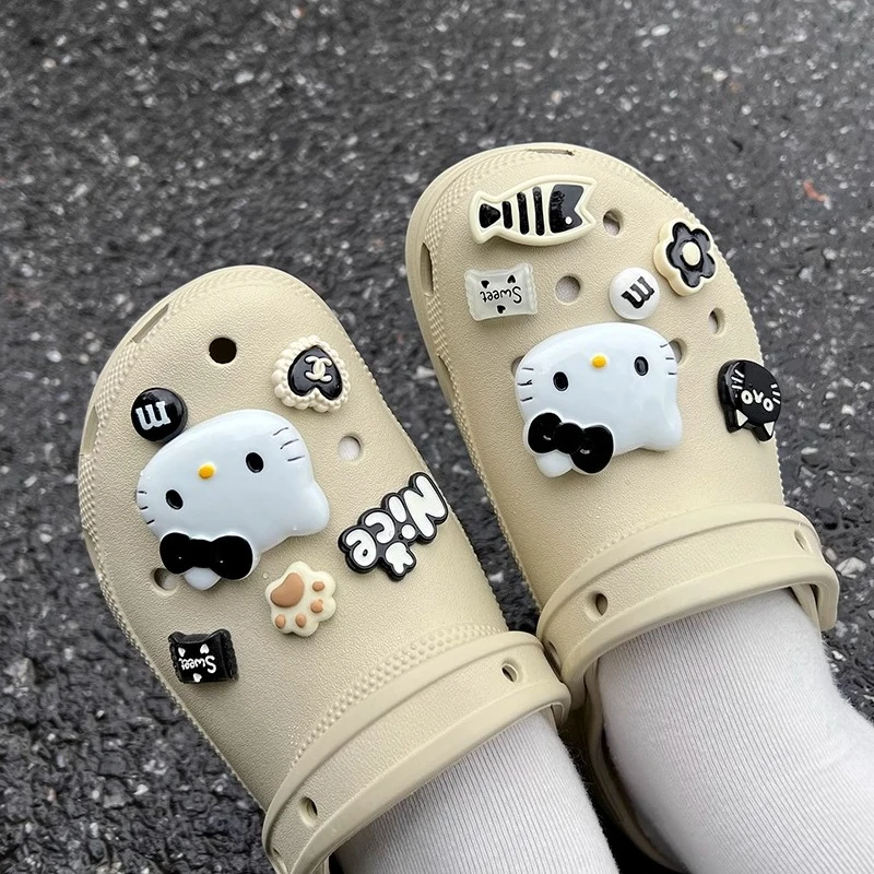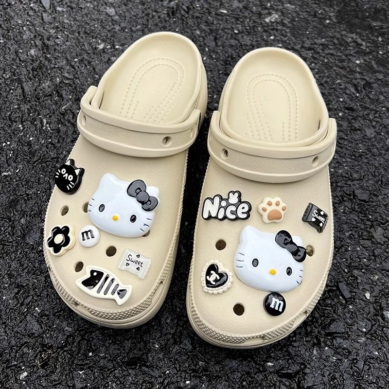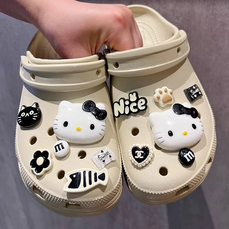 INS Black & White Series Hello Kitty Cat & Fish Shoe Charms Accessories Women Sandals Decorative Buckle Party Gifts