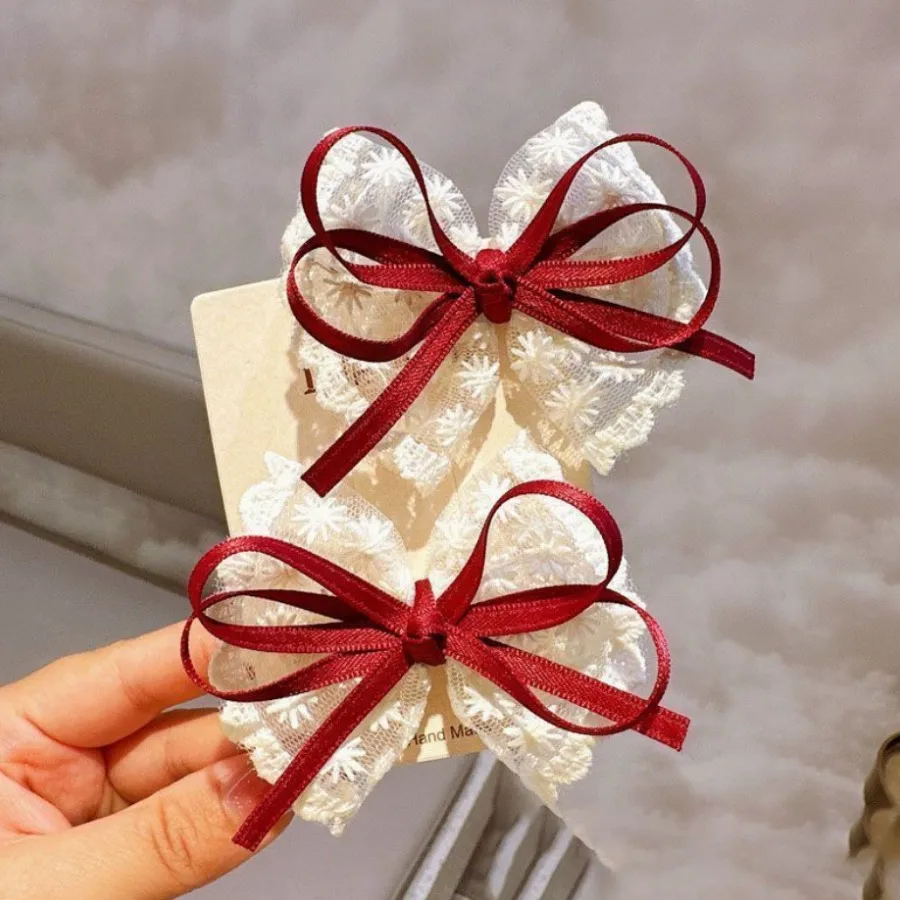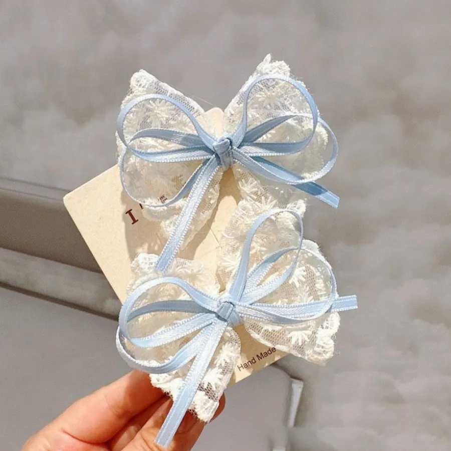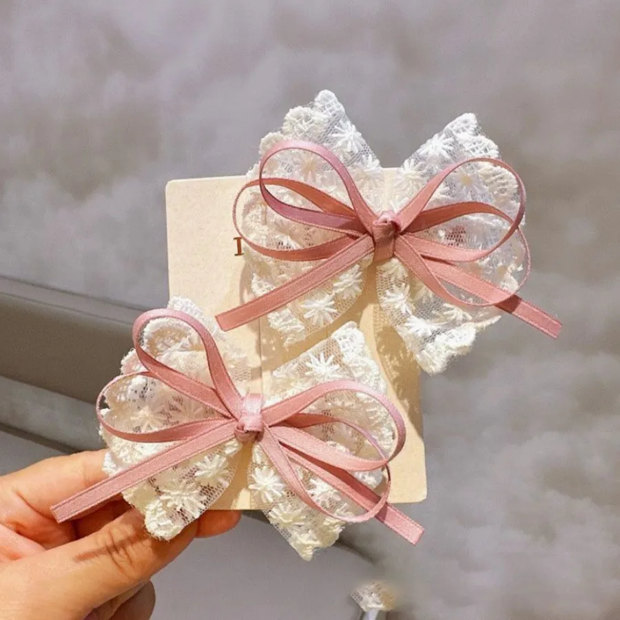 Korean style lace bow children's headwear with little girl's temperament lace hair clip heavy handmade high-end headwear hair cl
