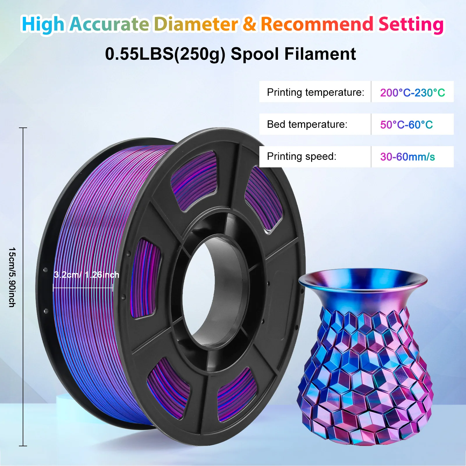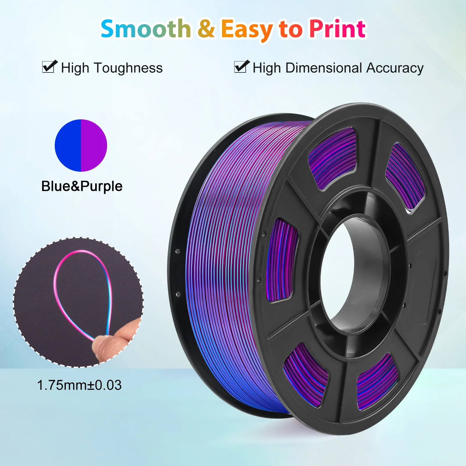 PLA Filament 1.75mm Dual Color Blue Purple, 3D Printer Filament , 250g Spool(0.55lbs) Fits for Most FDM 3D Printers