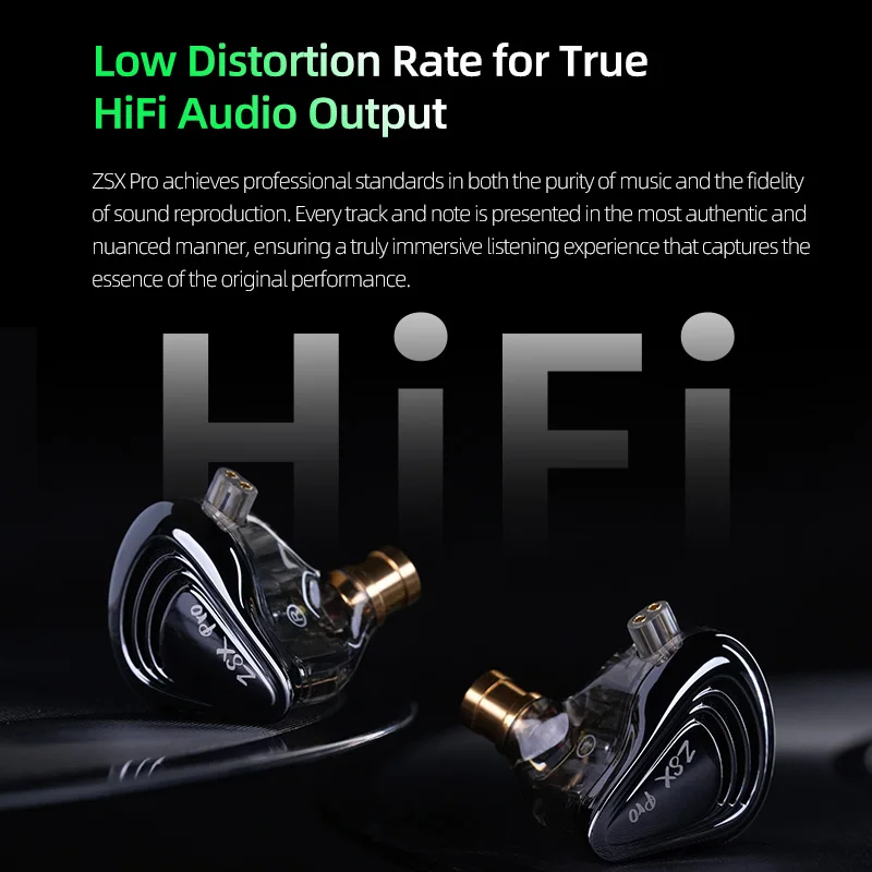 KZ ZSX PRO 5ba + 1dd 12mm hybrid driver headphones, high-fidelity music, sports and gaming headphones, 2-pin replaceable cable z