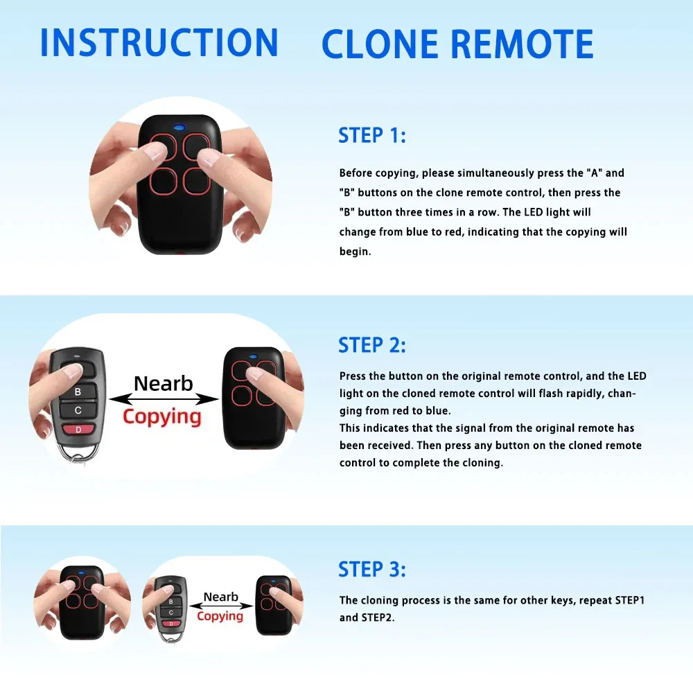Multifrequency 280 to 868 Mhz 433Mhz 433.92MHz Universal Remote Control Garage Command Fixed Variable Code Gate Keychain Clone