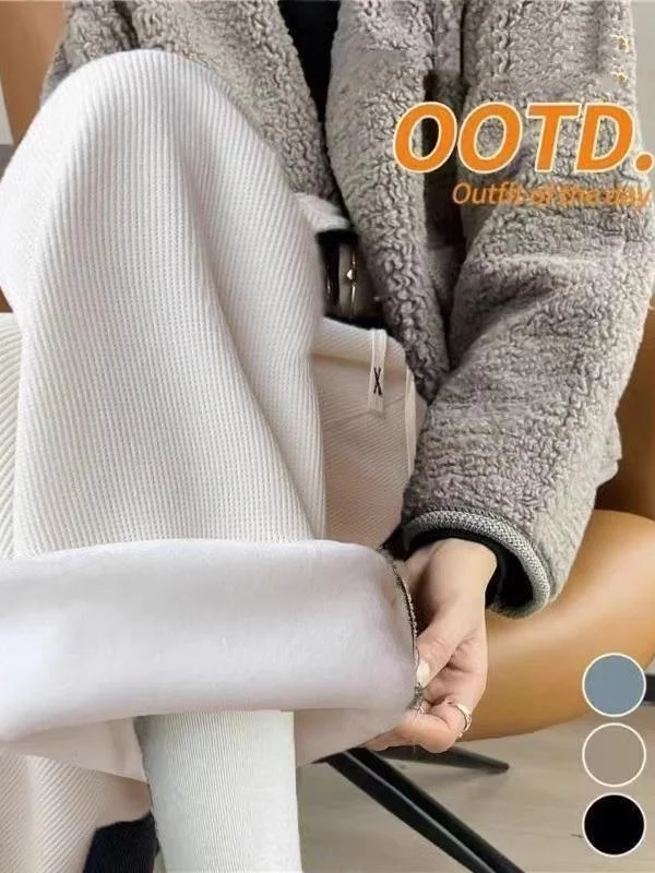 Women's Autumn Winter Thiened Fce Wide Leg Pants Casual Straight Cut High Waist Nine Points Korean Sle Trousers