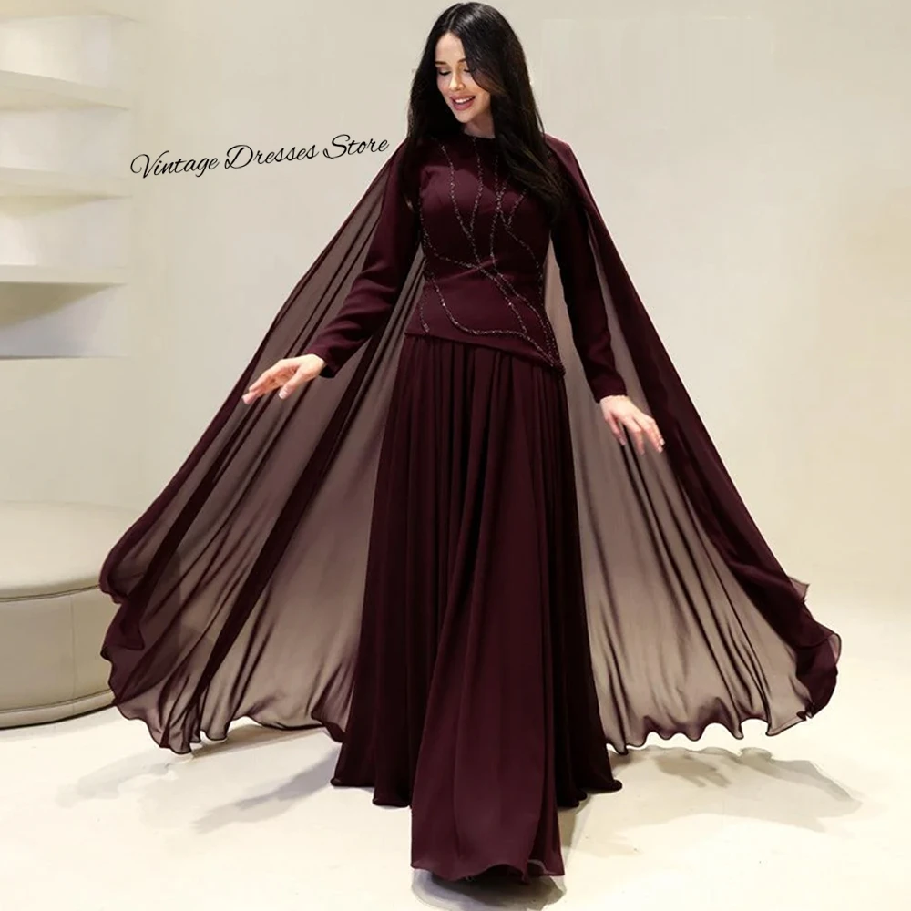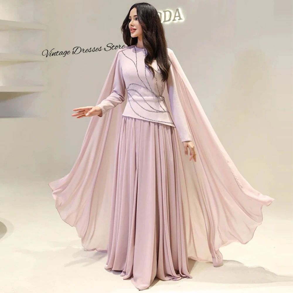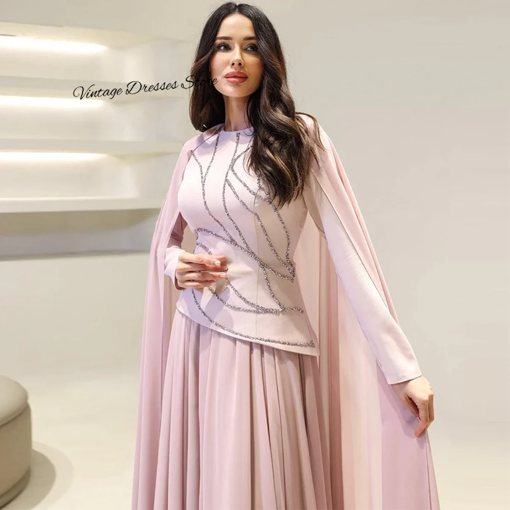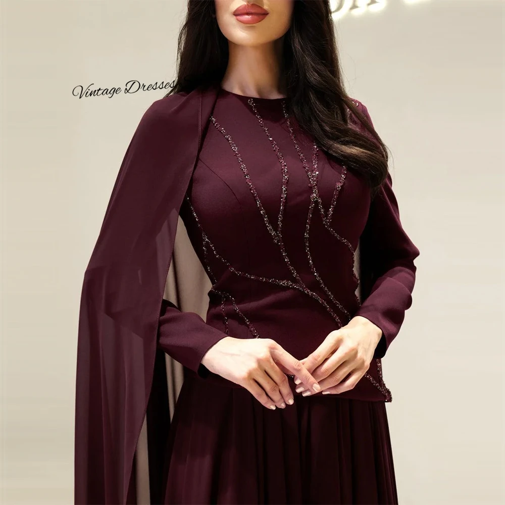 Soft Jersey and Chiffon Evening Dress Simple O-Neck Long Sleeves Prom Dresses Delicate Crystal Customized Special Occasion Gowns