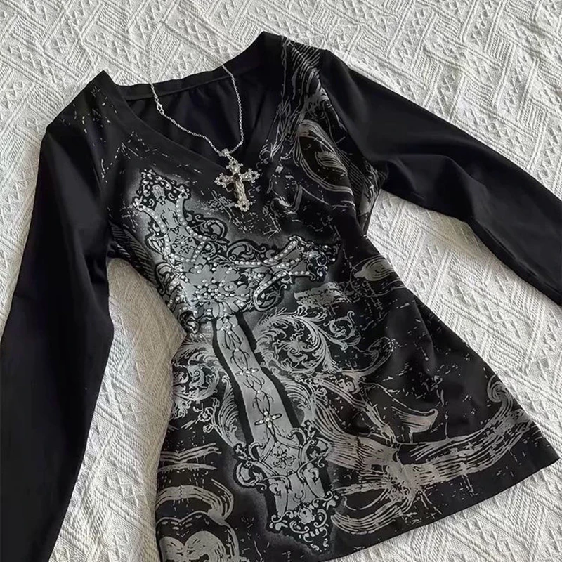 Women's Hip hop 90s Vintage Punk T-Shirt autumn Streetwear Short Sleeve Gothic Slim Crop Top Hotgirl Casual Femme Tee y2k