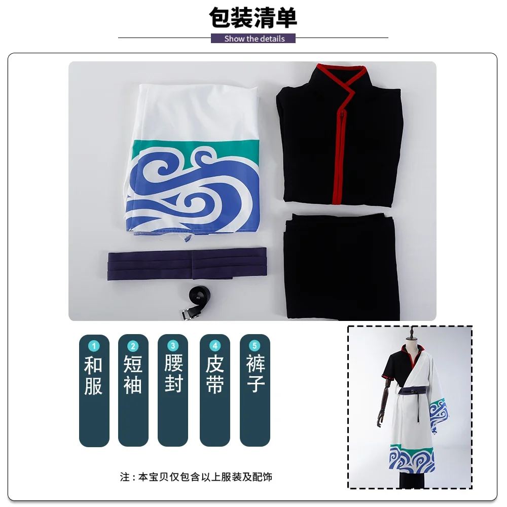 Gintama Anime SakMiGintoki Cosplay Costume, Wig, Kimono, Top, Pants, Body, Convention, Halloween, Christmas Event, Gift