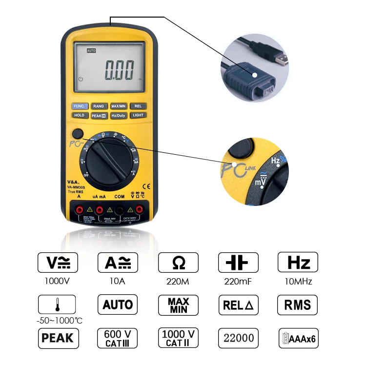 22000 Counts High Accuracy Digital Multimeter 50000 Counts With USB DMM VA30S V&A Instrument