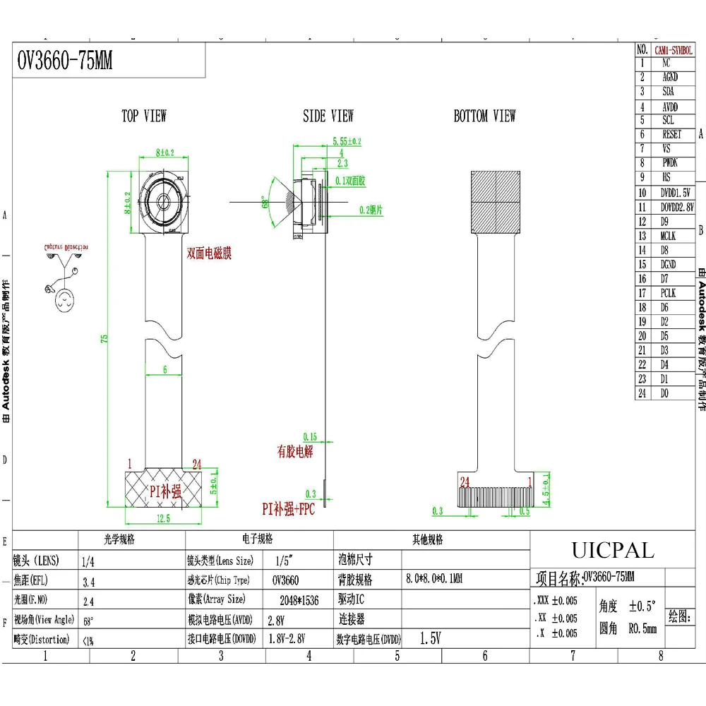 Upgraded OV3660 Camera Module for ESP32 CAM ESP32 S3 Development Board 68 120 160 Degrees Anti-interference RGB HD 3MP DVP 24PIN
