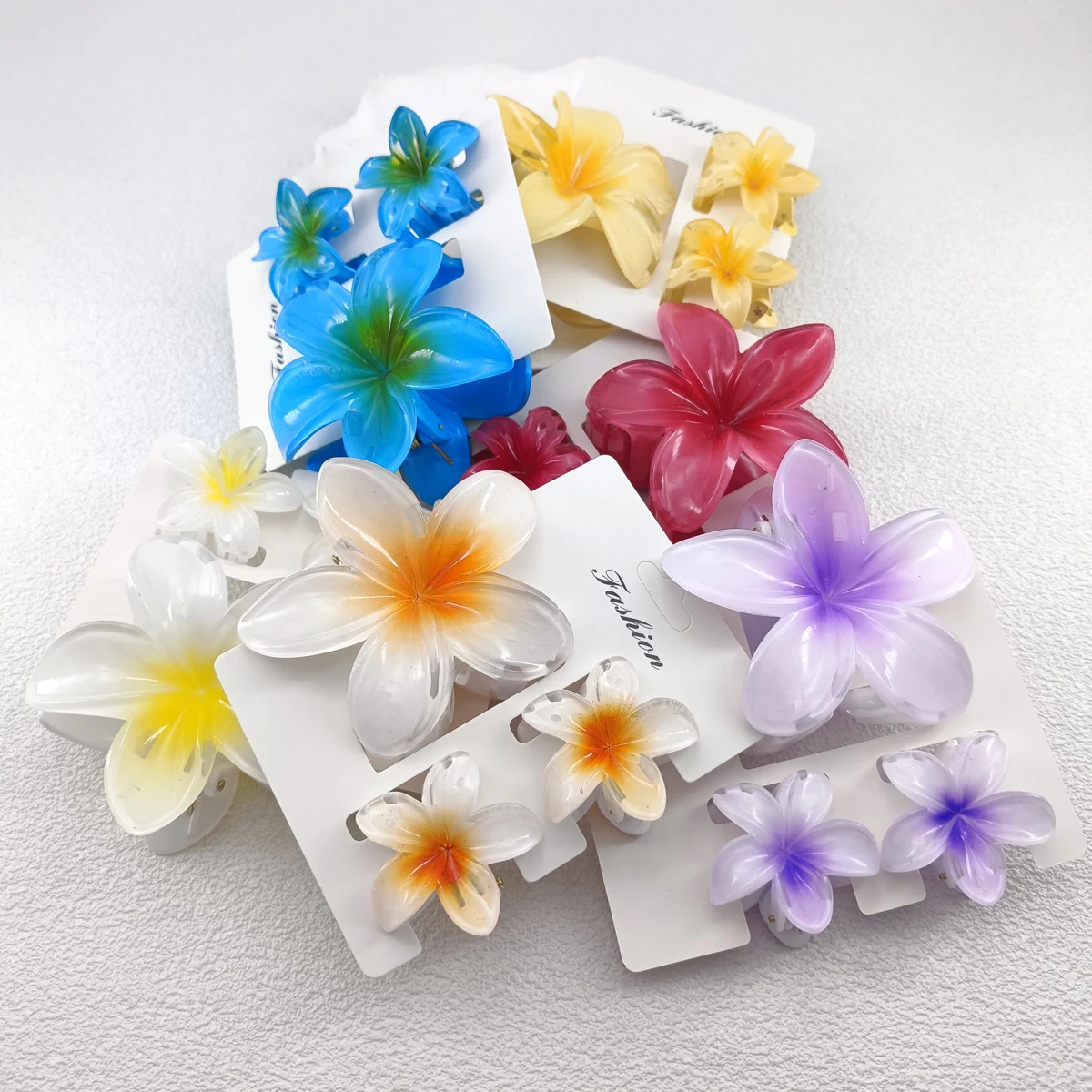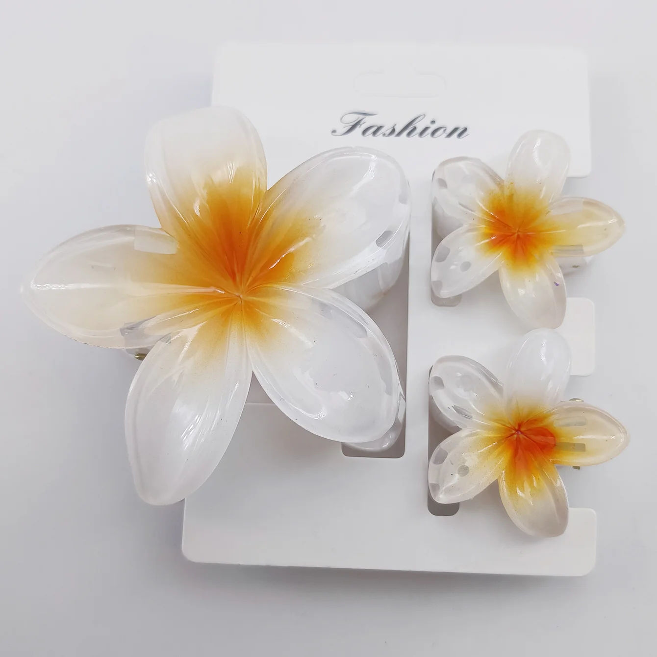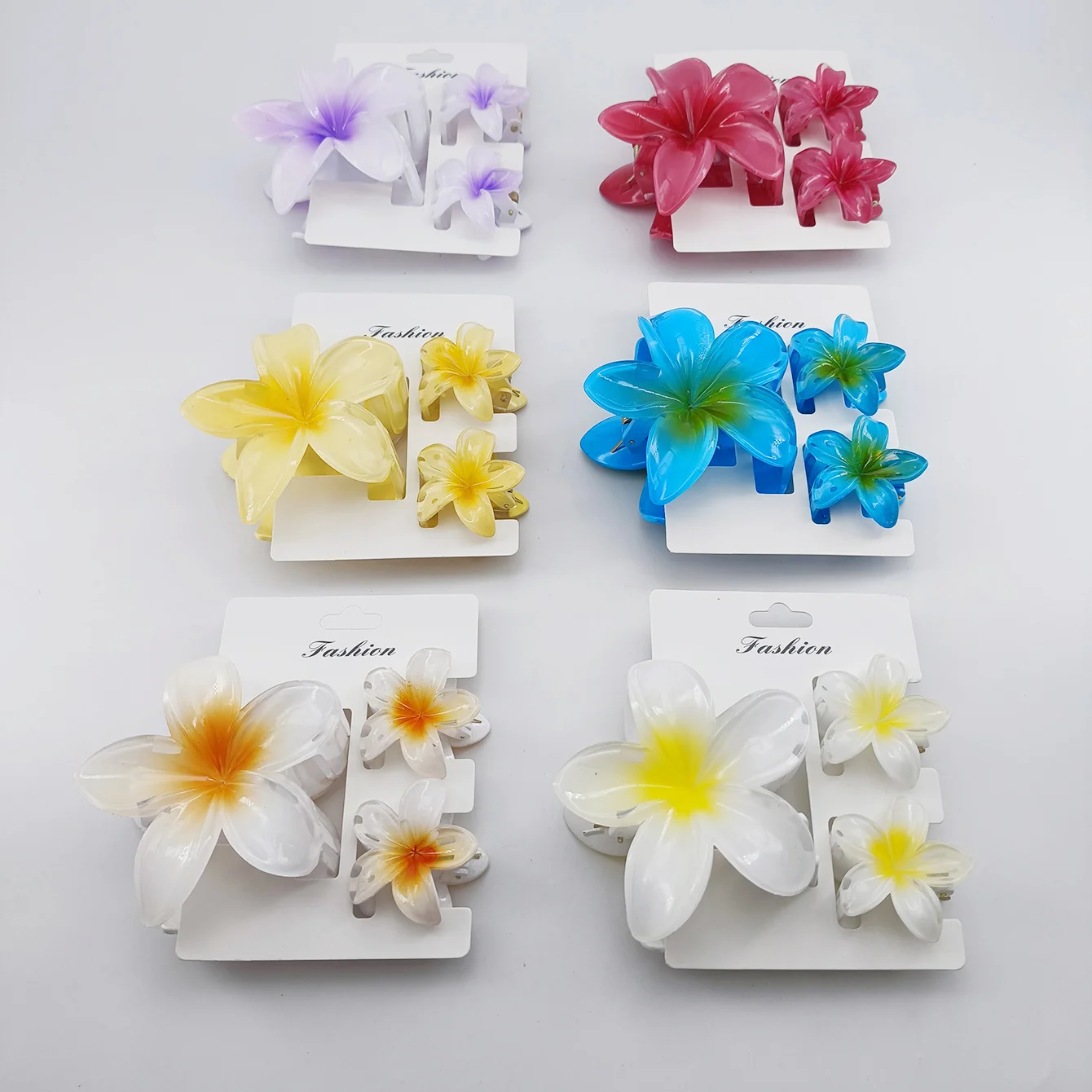 3PCS/SET Summer Flowers Gradient Color Plumeria rubra L. Hair Claw for Women Hair Clips Beach Popular hair Accesories