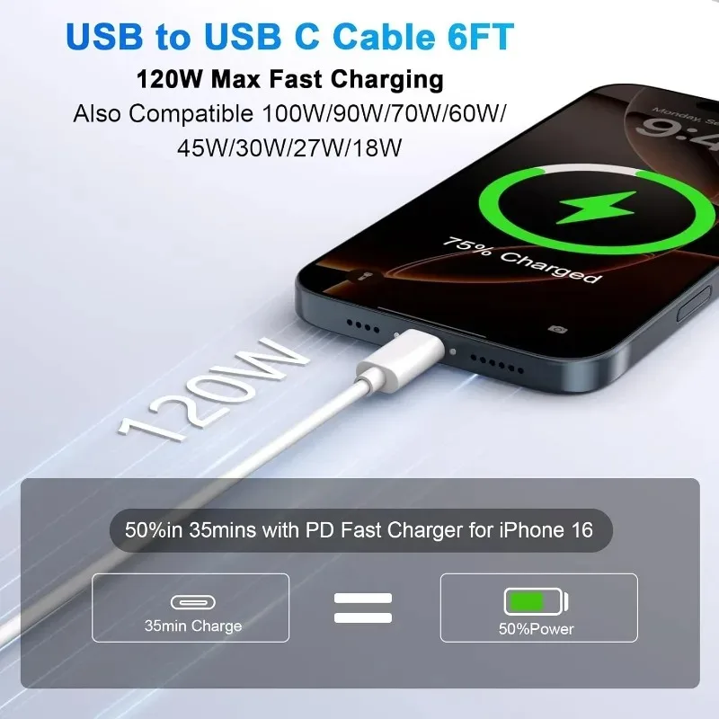 1-3PCS Quick Charging Cable 120W 10A USB A To Type C Fast Charger High-speed Data Transfer Wire Cords for Samsung Xiaomi Huawei