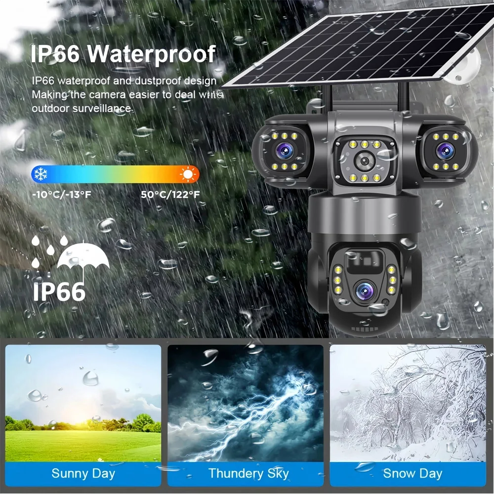 12MP HD Solar Outdoor Camera 3 Lens 3 Screen 10X Zoom CCTV Night Vision IP66 Waterproof PIR Human Detect Wifi Security Camera