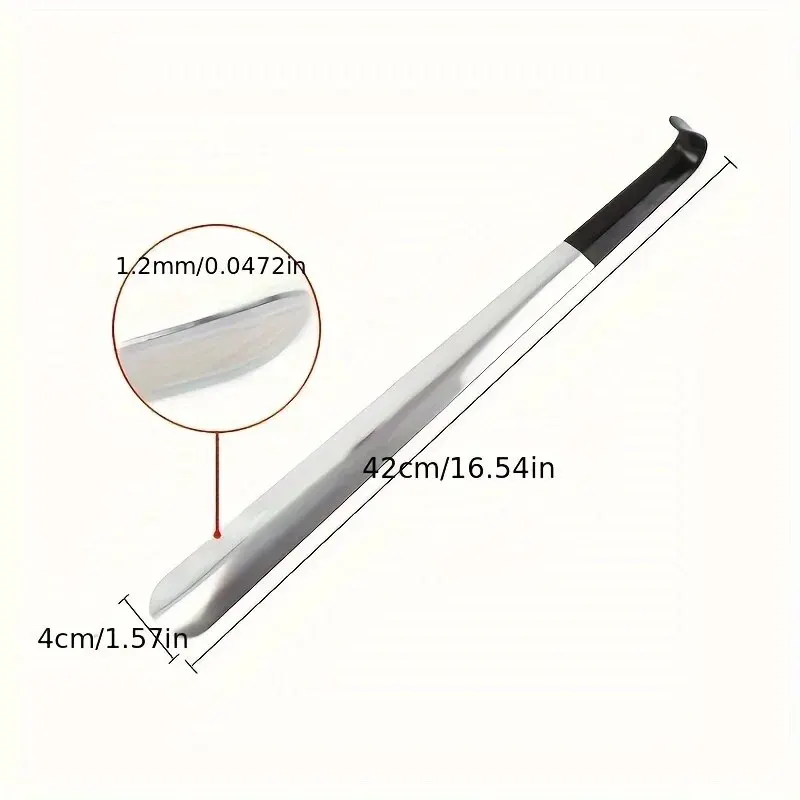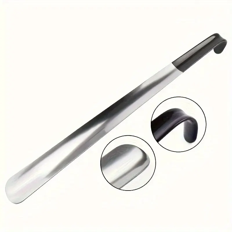 1pc 16.5-inch Stainless Steel Pair Shoehorn With A Black Handle Makes It Easy To Wear Shoes Without Bending Over