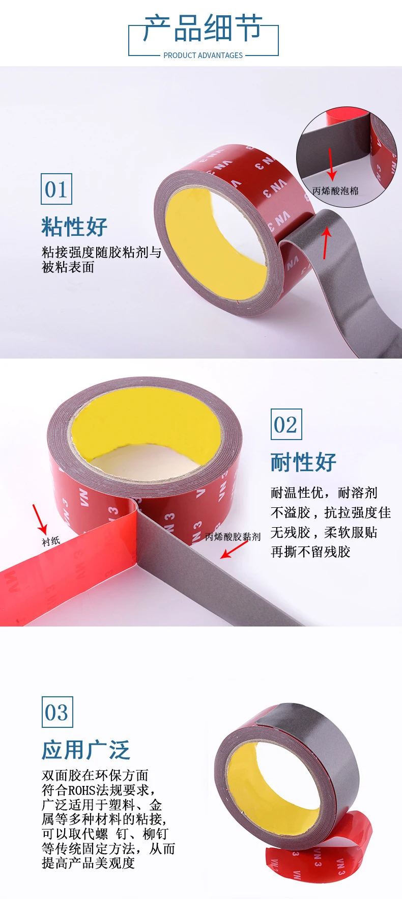 3Meters Strong Double sided Tape Acrylic Foam Adhesive Tape Sticker for Car Home Indoor High temperature