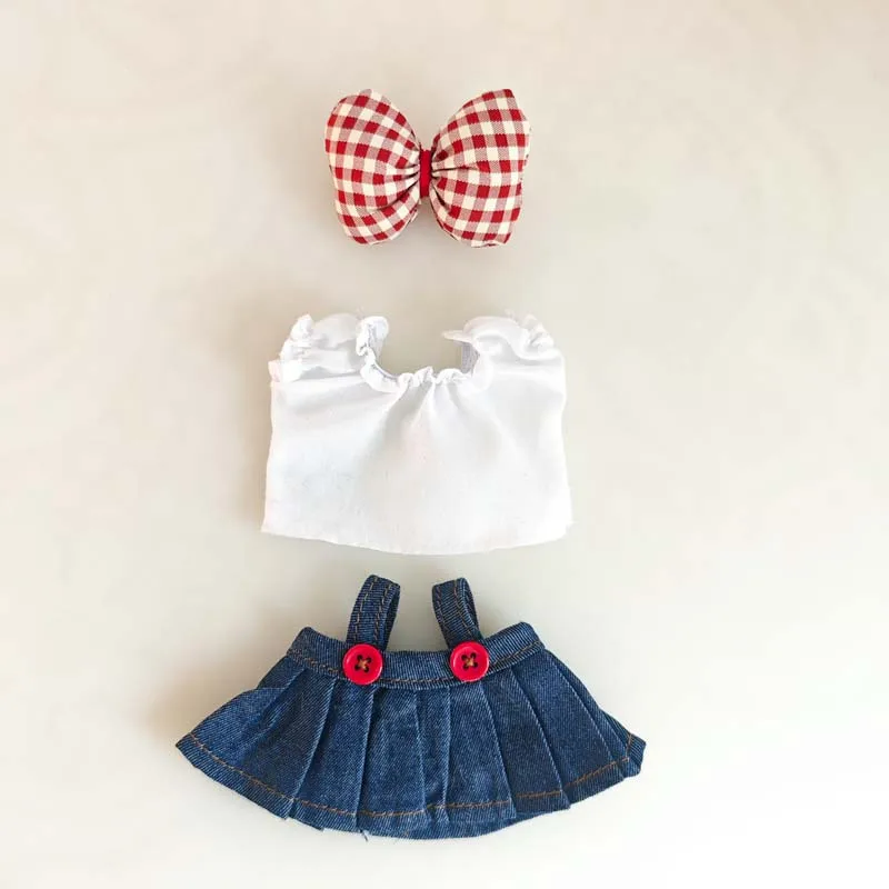 For Korea Kpop Exo Labubu Idol Dolls Jean Dress Bowknot Doll Clothes Kids Dollhouse 15-17cm Cute Clothes Doll Accessories Toys