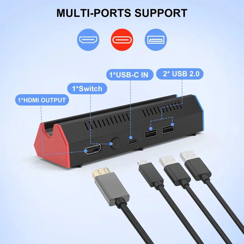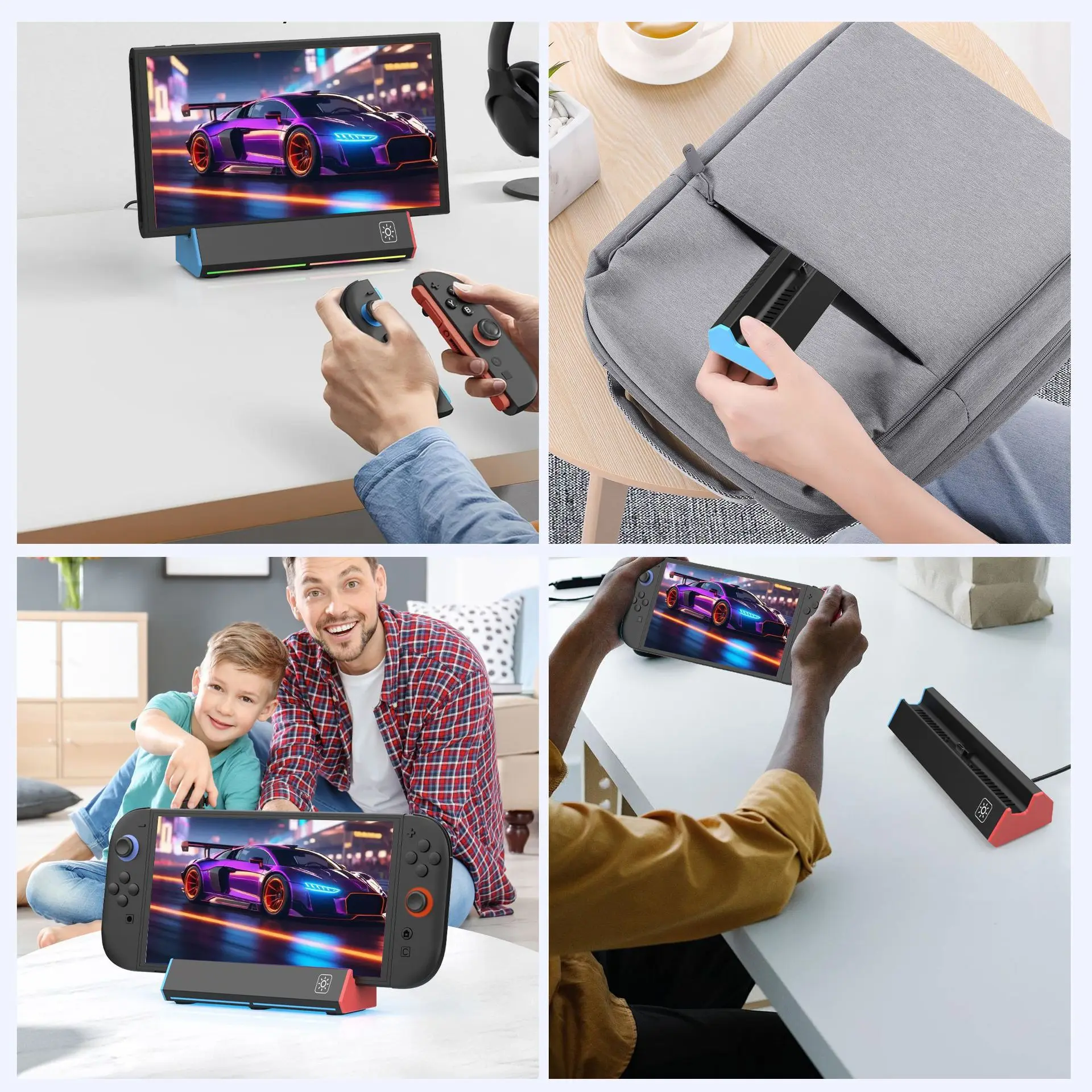 Portable Charging Dock Station Base with 4K HDMI Adapter/USB 2.0 /Type C Port for Nintendo Switch OLED Dock