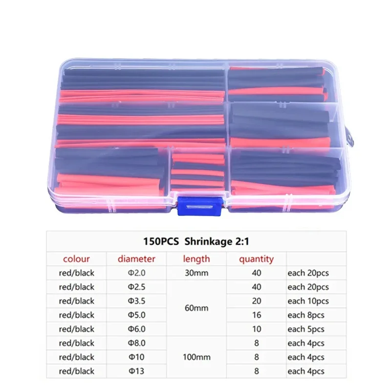 150PCS Heat-shrink Tubing Thermoresistant Tube Heat Shrink Wrapping Kit Electrical Connection Wire Cable Insulation Sleeving