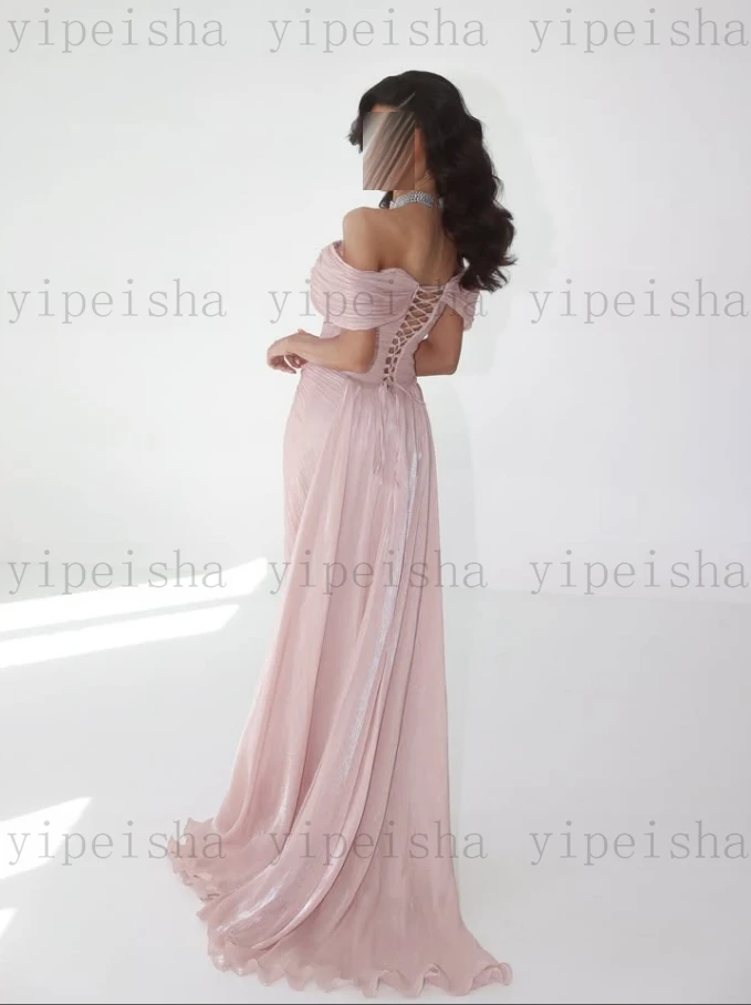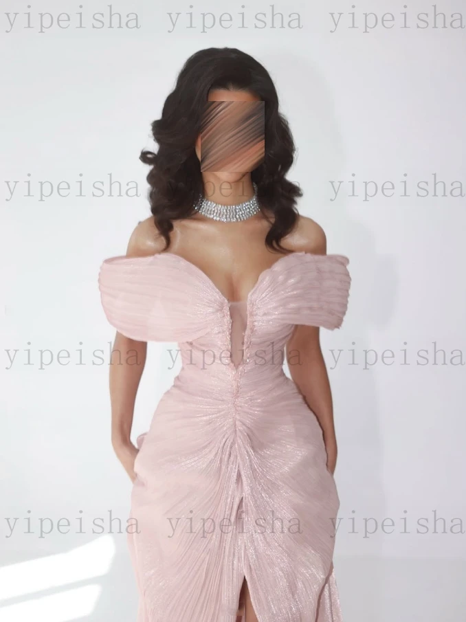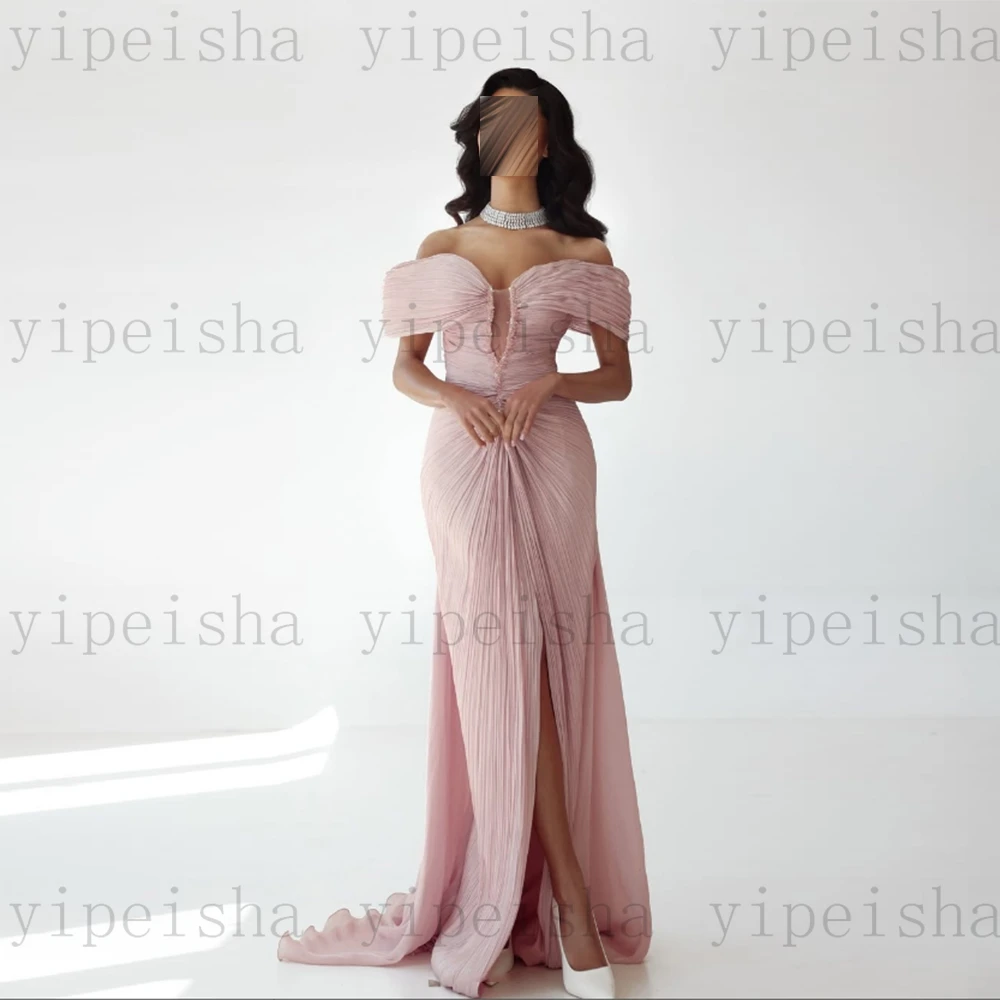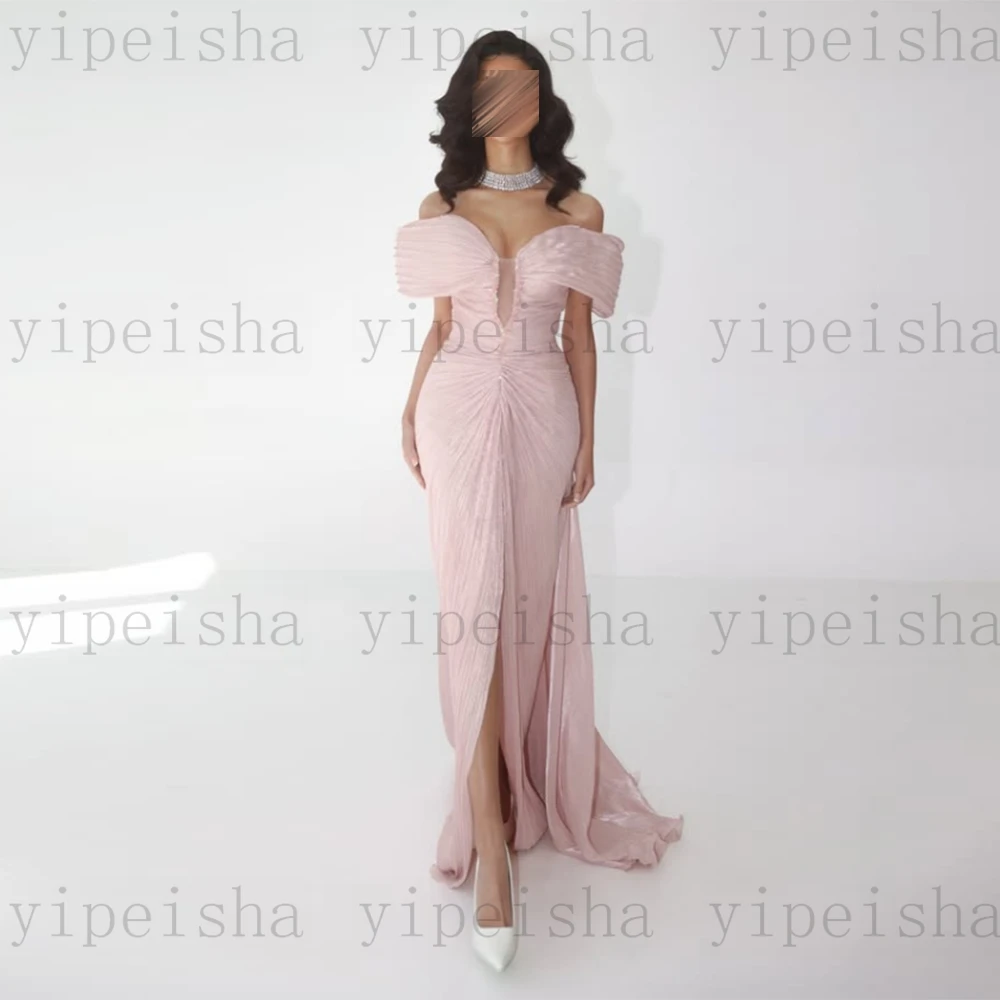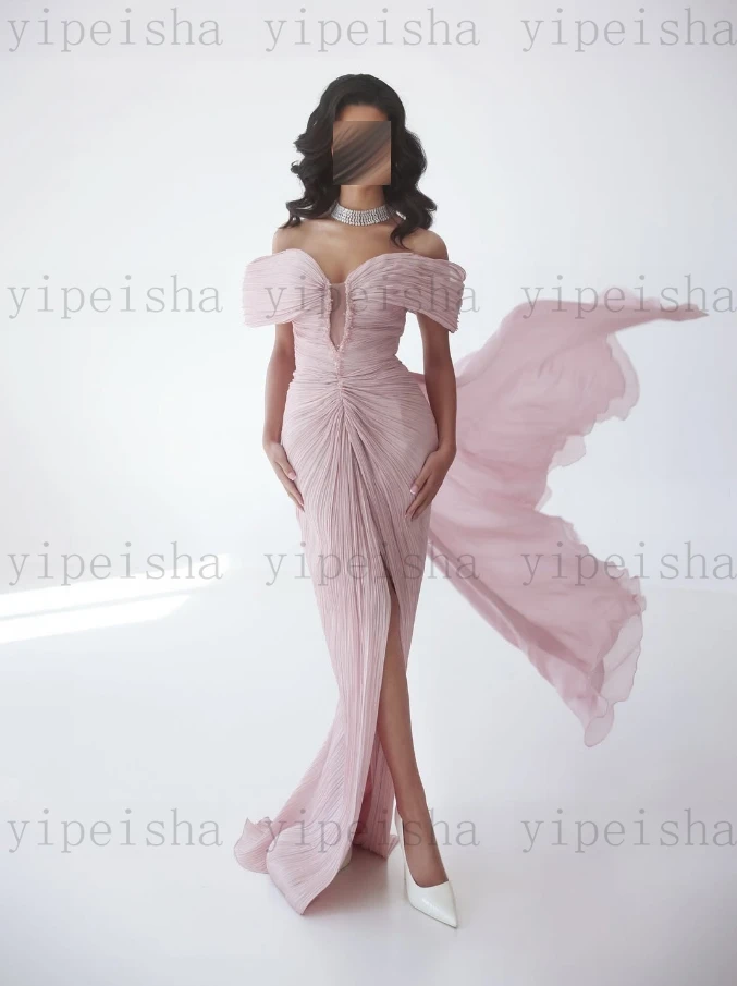 Customized Deep V-Neck Evening Dresses Off The Shoulder Pleat Backless Fornt Slit mermaid Prom Gown Long organza Party Dress