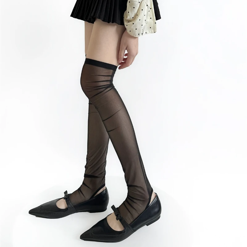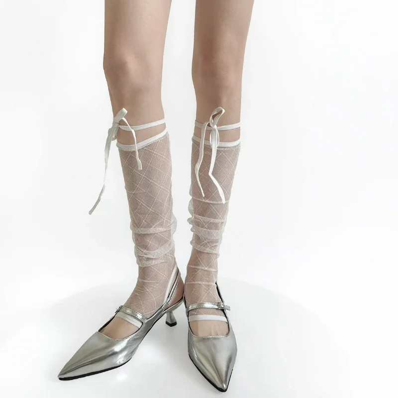 Women Leg Warmers Summer Sun Protection Mesh Foot Cover Knee Socks Bandage Bow Y2k Girls Leg Warmers Thigh High Socks Stockings
