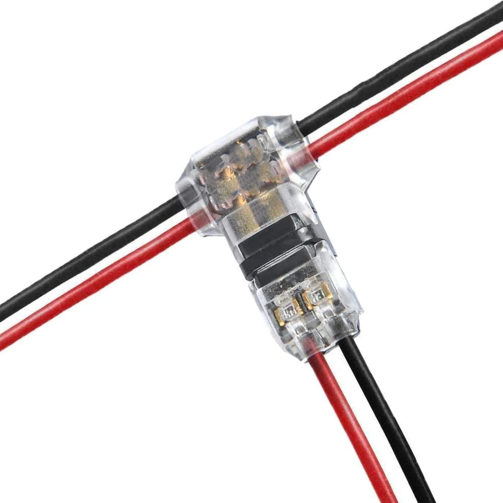T Tap Wire Connectors Low Voltage Wire Connectors Solid Connection T Type 2 Pins Wire Splice Connectors Solderless No Stripping