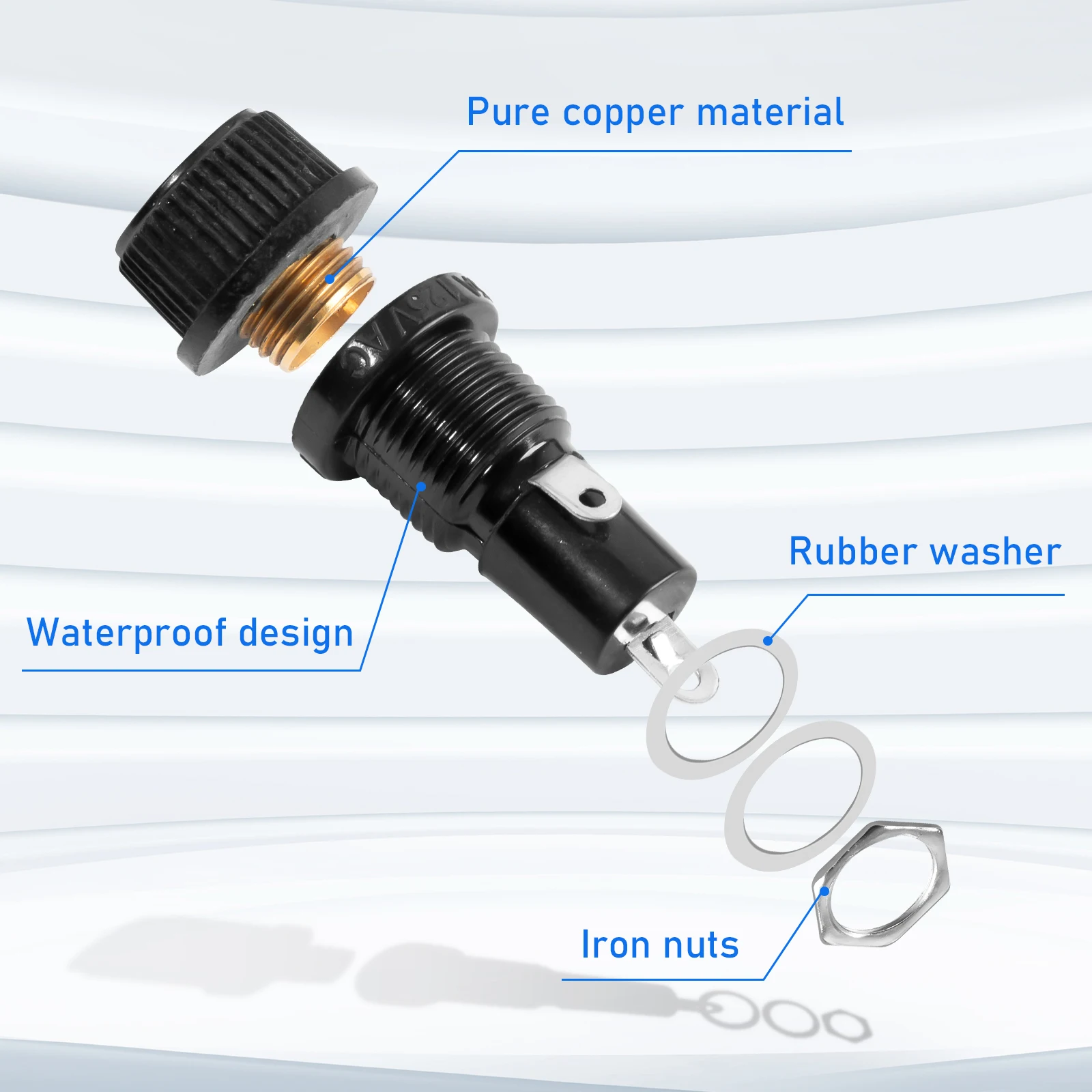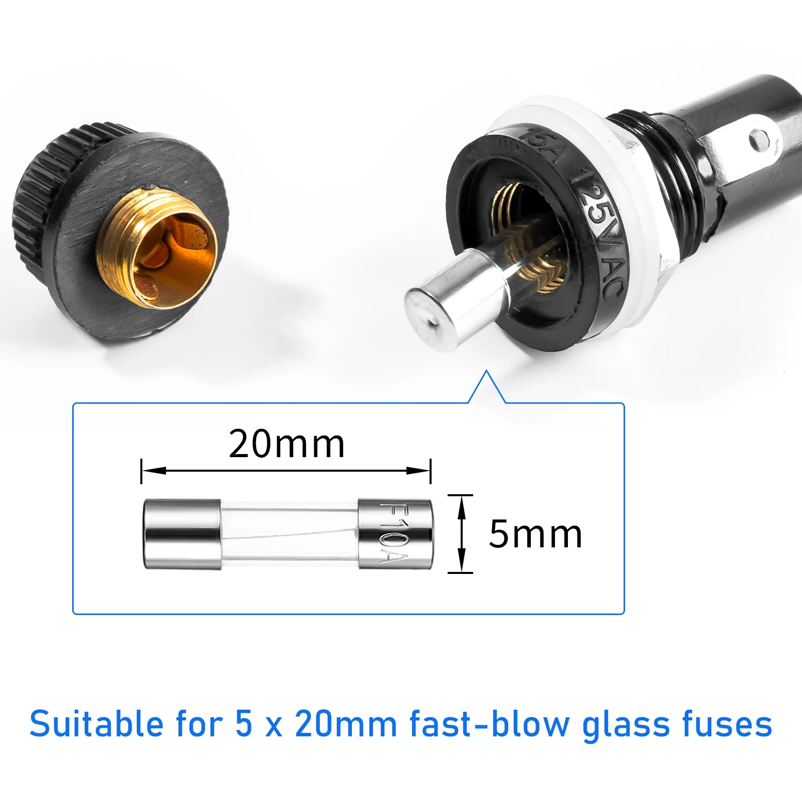 20pcs Panel Mount Fuse Holder 5x20mm, Screw Cap Fuse Holders 250VAC/10A 125VAC/15A