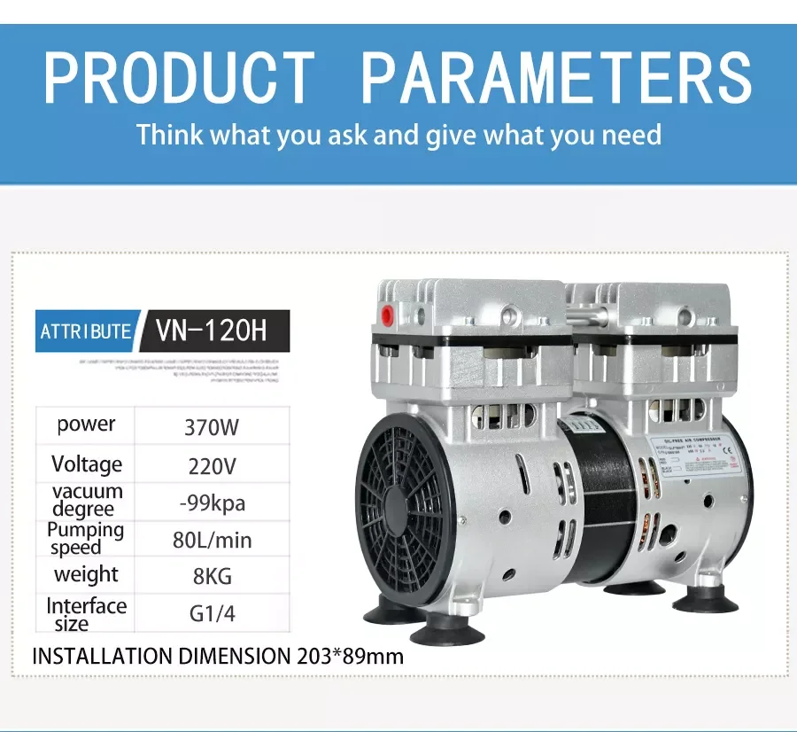 VN-120H Small Oilless Vacuum Pump Flow Rate 80L/min Oil Free Vacuum Pump Suction Pumps
