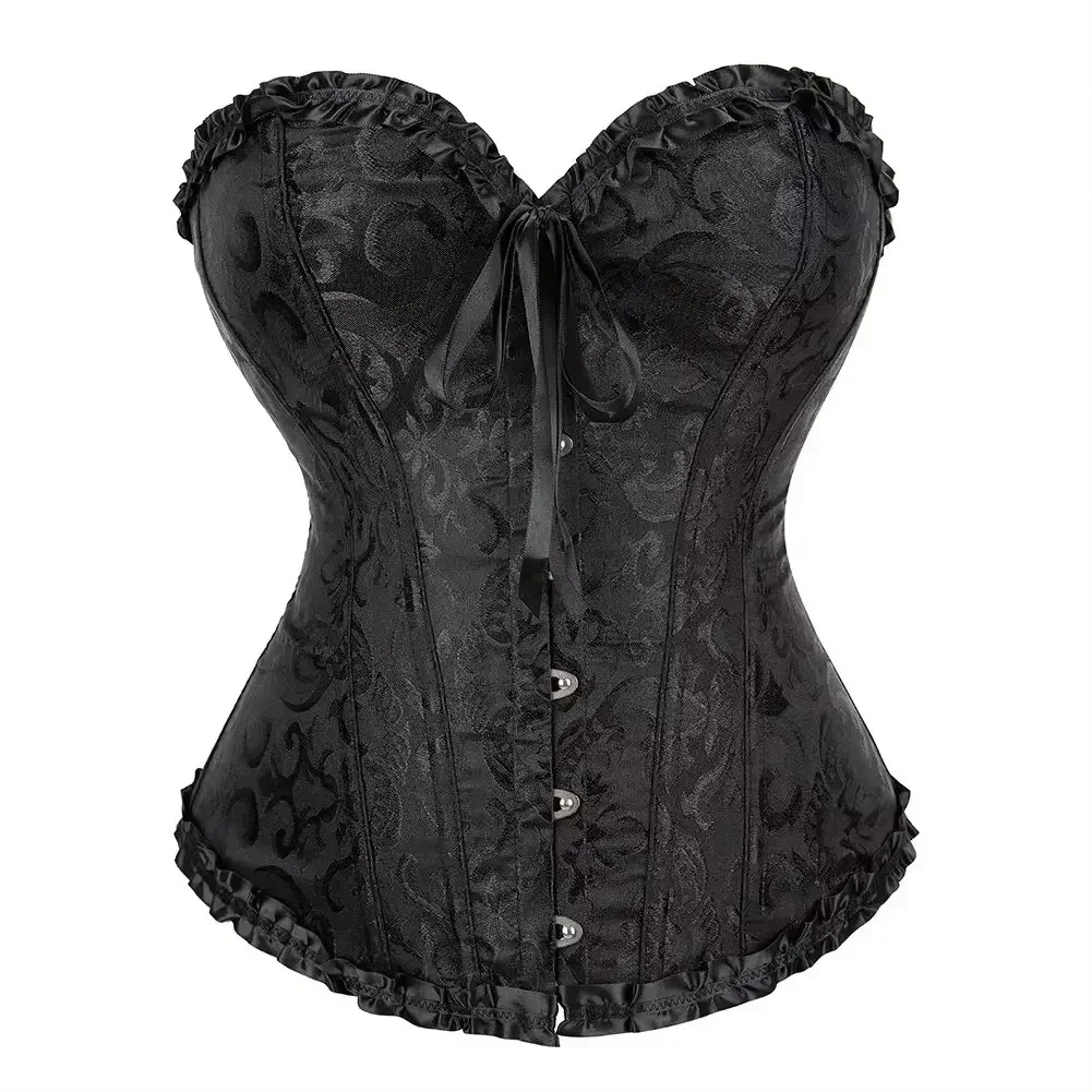 Women Corset Top Jacquard Overbust Bustier Victorian Lace up Floral Lingerie Korset Vintage Gothic Basques Costume