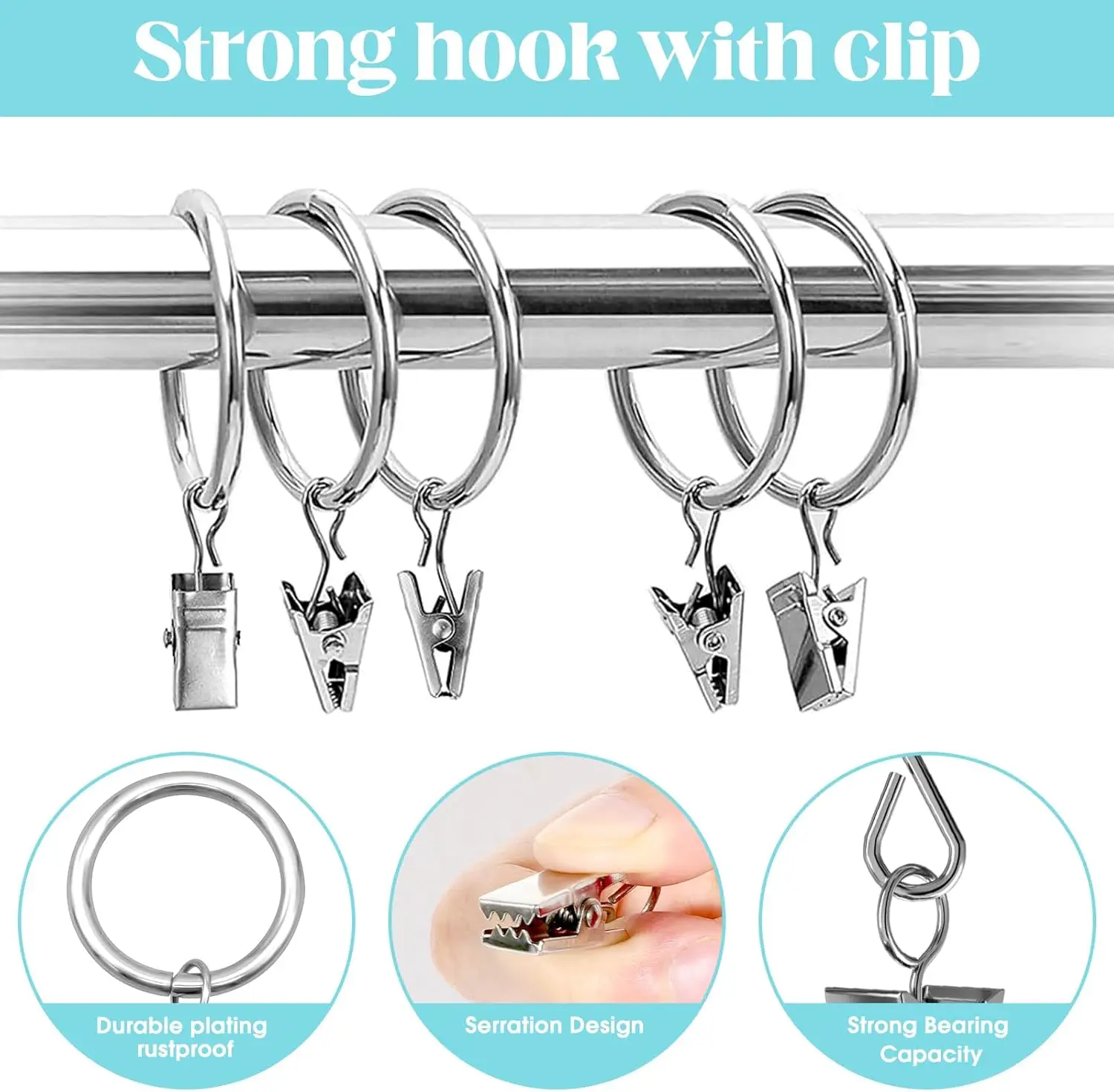 Metal Curtain Rod Clip with Rings Hooks Retro Drapes Tie Buckles Home Bedroom Bathroom Decorative Hanger Shower Curtain Clips