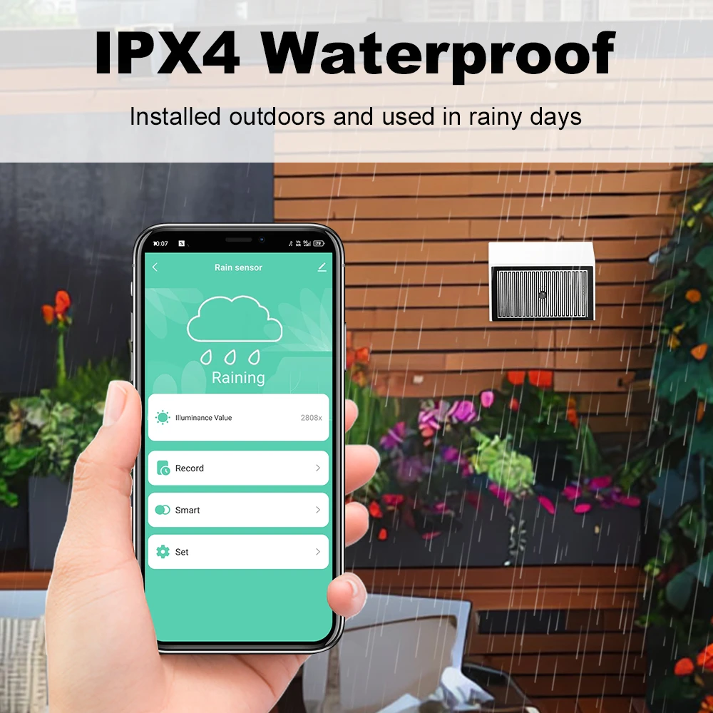 Zigbee3.0 Zigbee2MQTT Smart Rain Sensor With Sunlight Detector Controlled For Home Outdoor Automation IPX4 Waterproof
