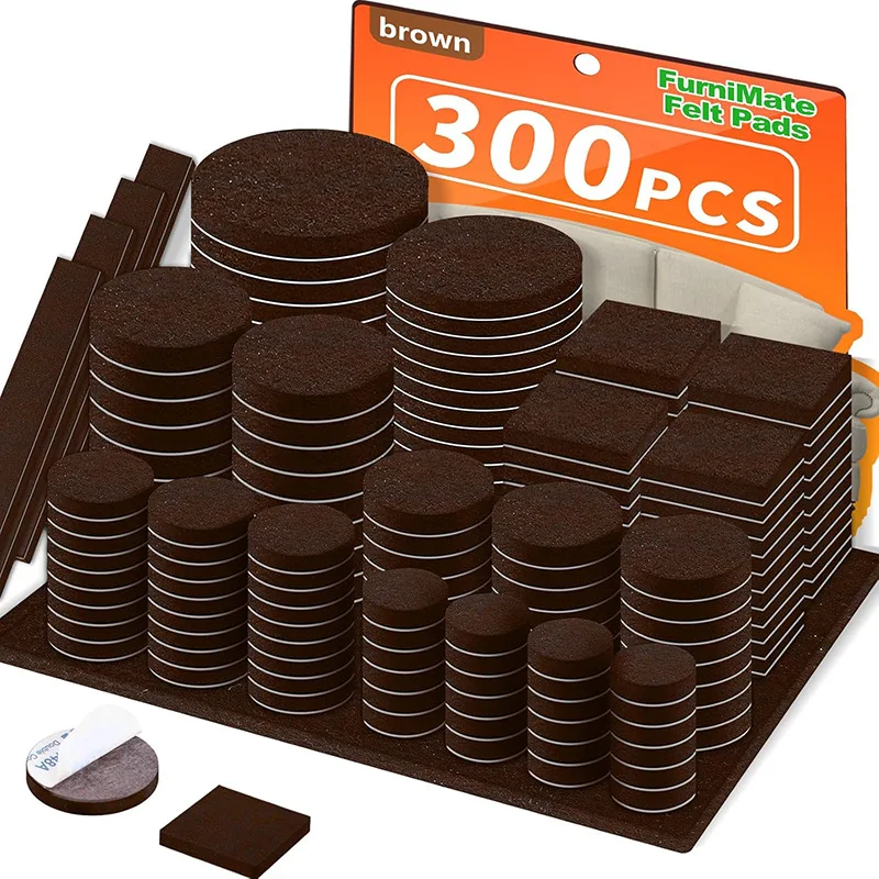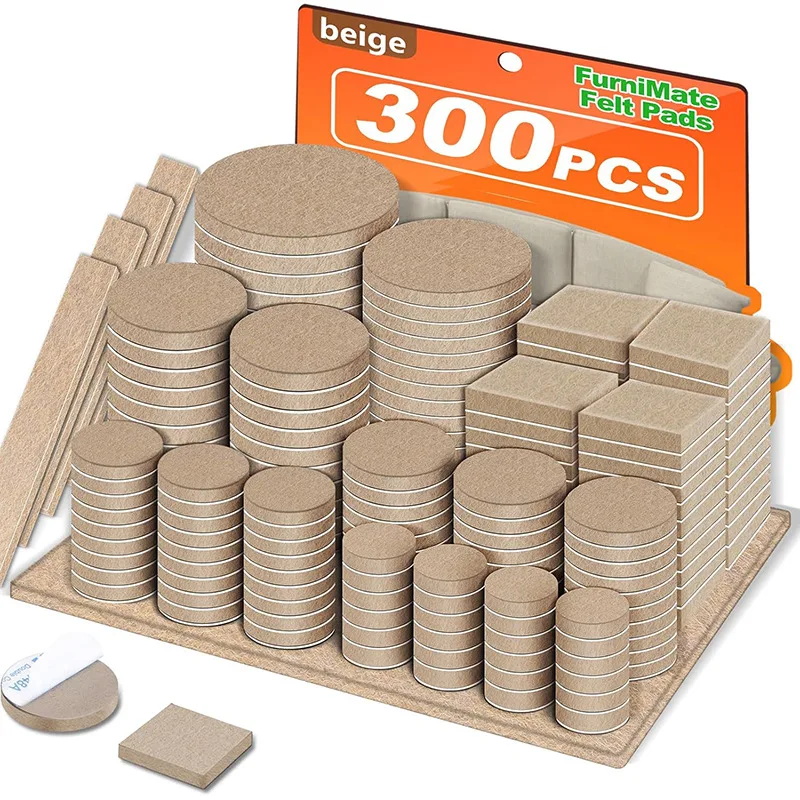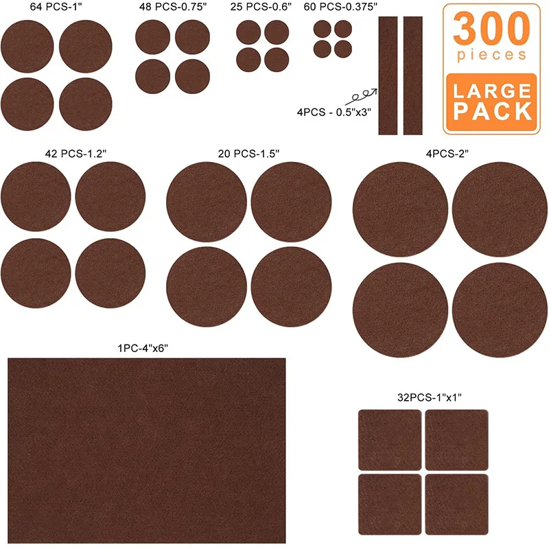 300PCS Value Pack Felt Chair Leg Pads Various Sizes Self Adhesive Furniture Protectors for Hardwood Floor